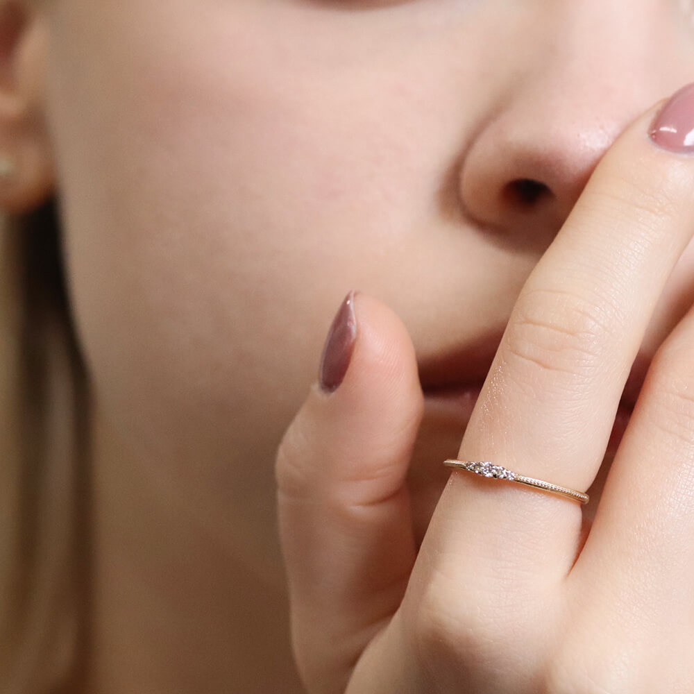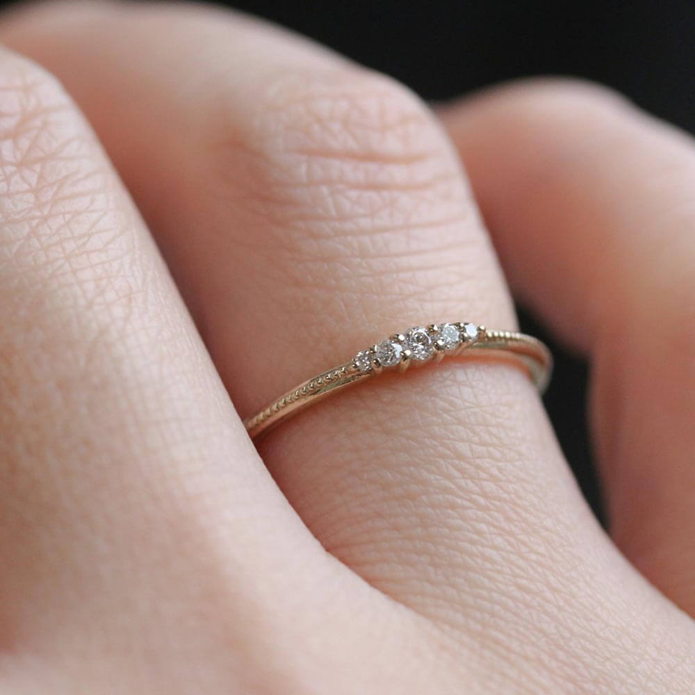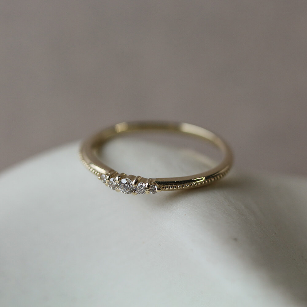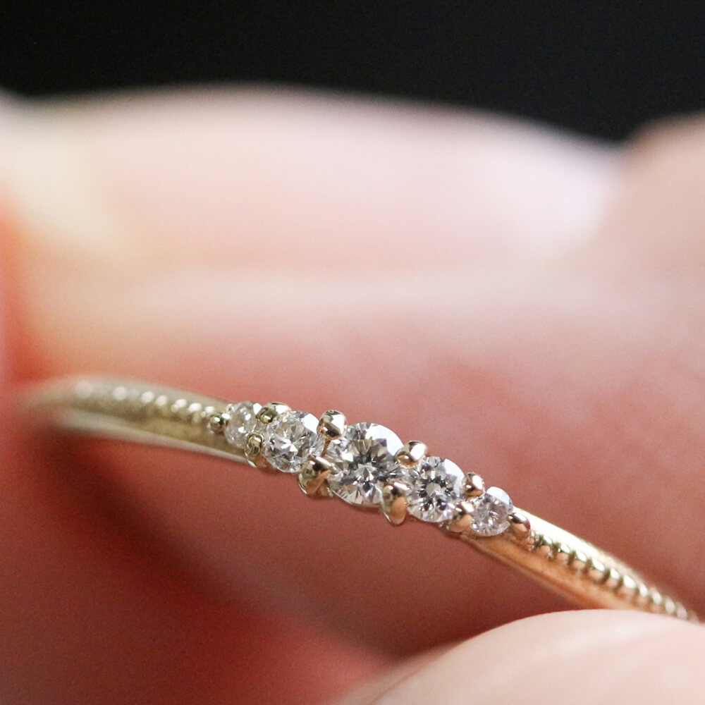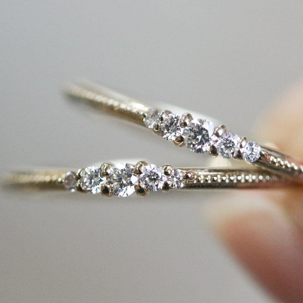 サイズグラデーションでセットされたダイヤモンドがなめらかな仕上がりです。