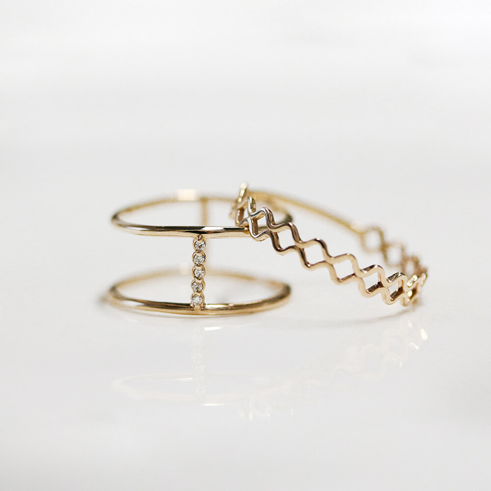 スライド式でサイズ調整できるので、コーディネートに合わせてお好きな指に付け替えられるのが魅力的。