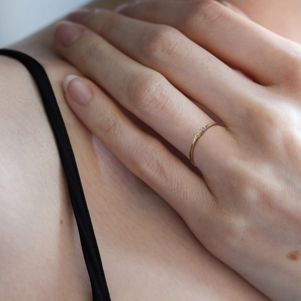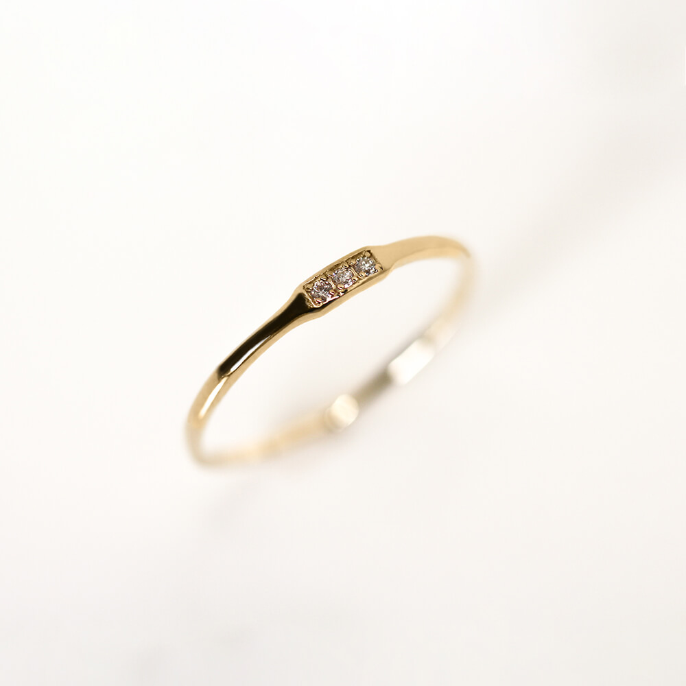 0.02ctのダイヤモンドが3石あしらわれたダイヤモンドリング。