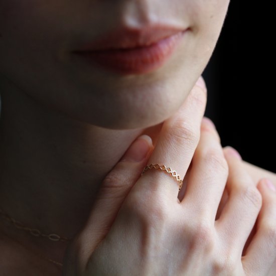 抜け感のあるデザインで天然石のリングと合わせても自然に手元を彩ってくれます。