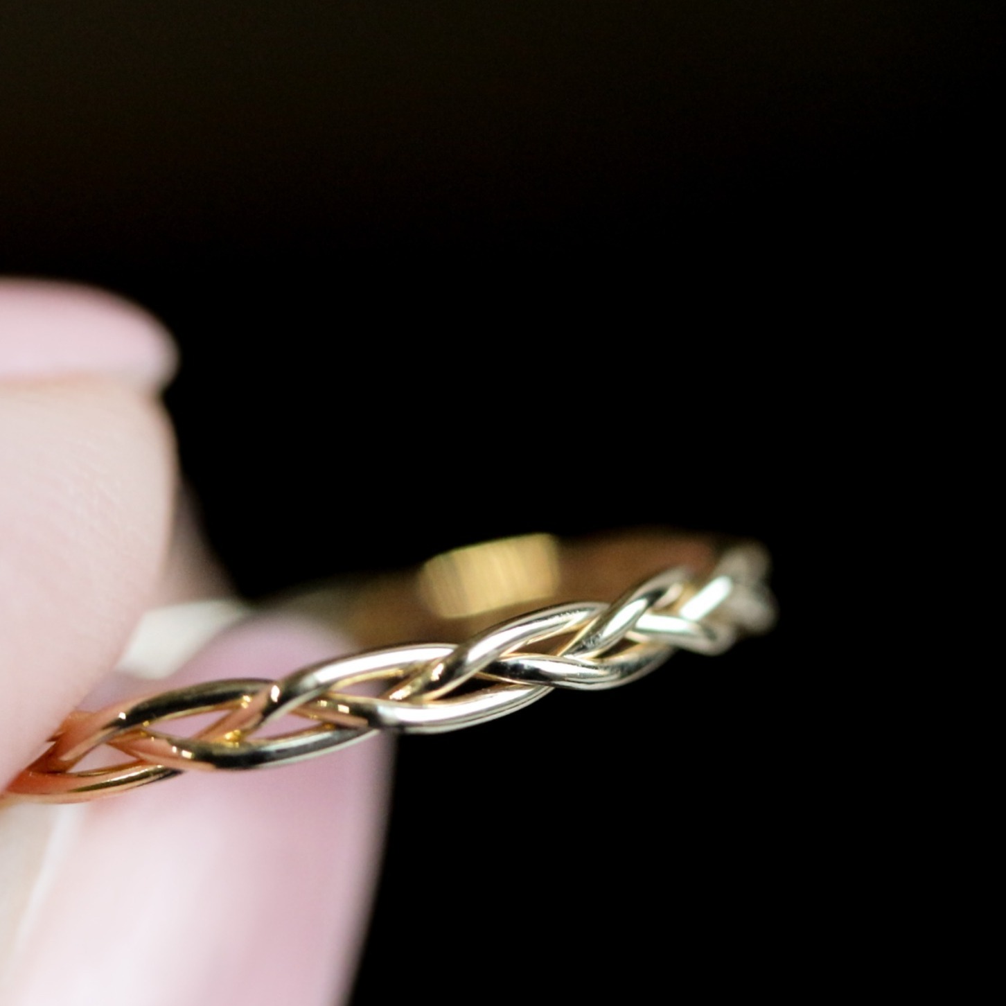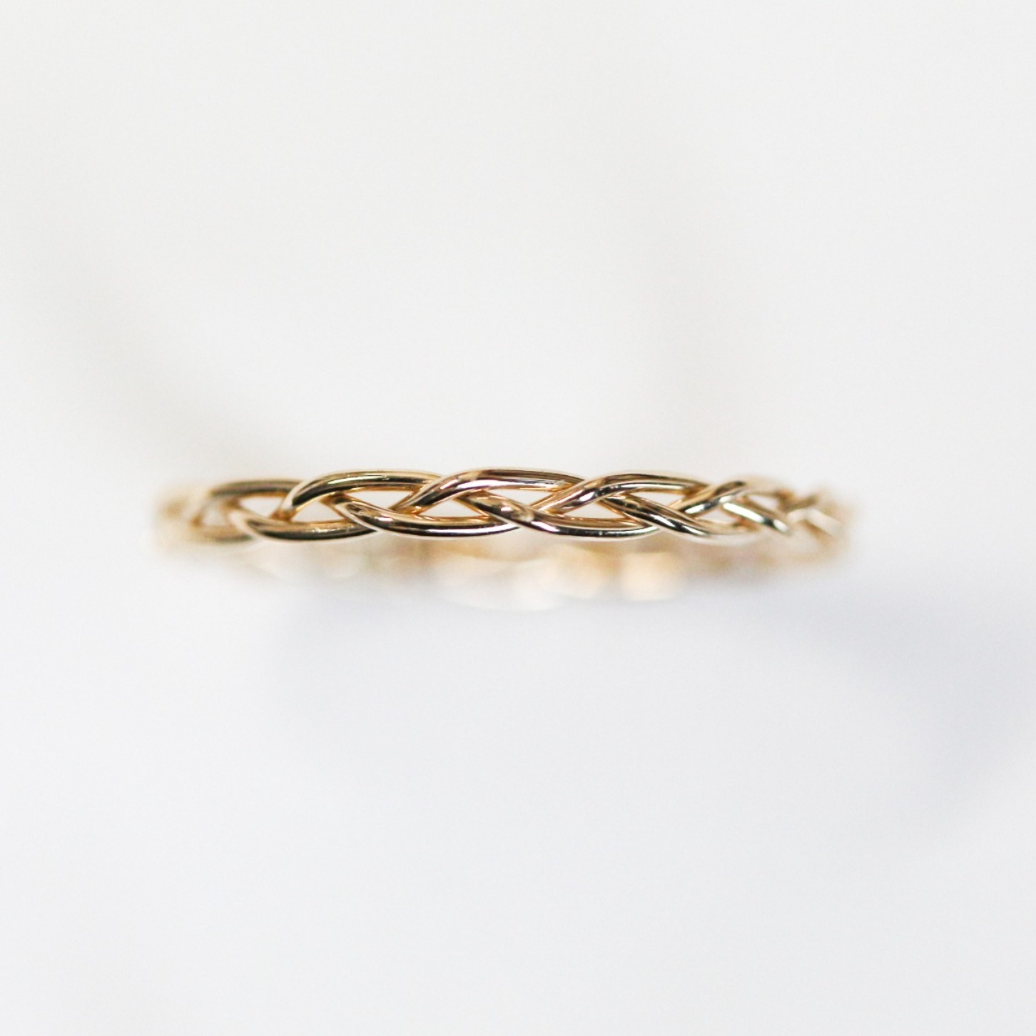 デザイン性のあるリングは主役になりがちですが、細いデザインで重ね付けにもぴったりなデザインに仕上げました。