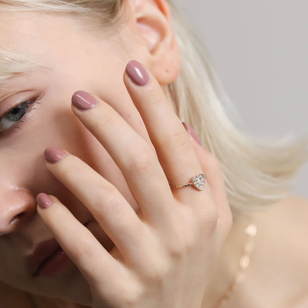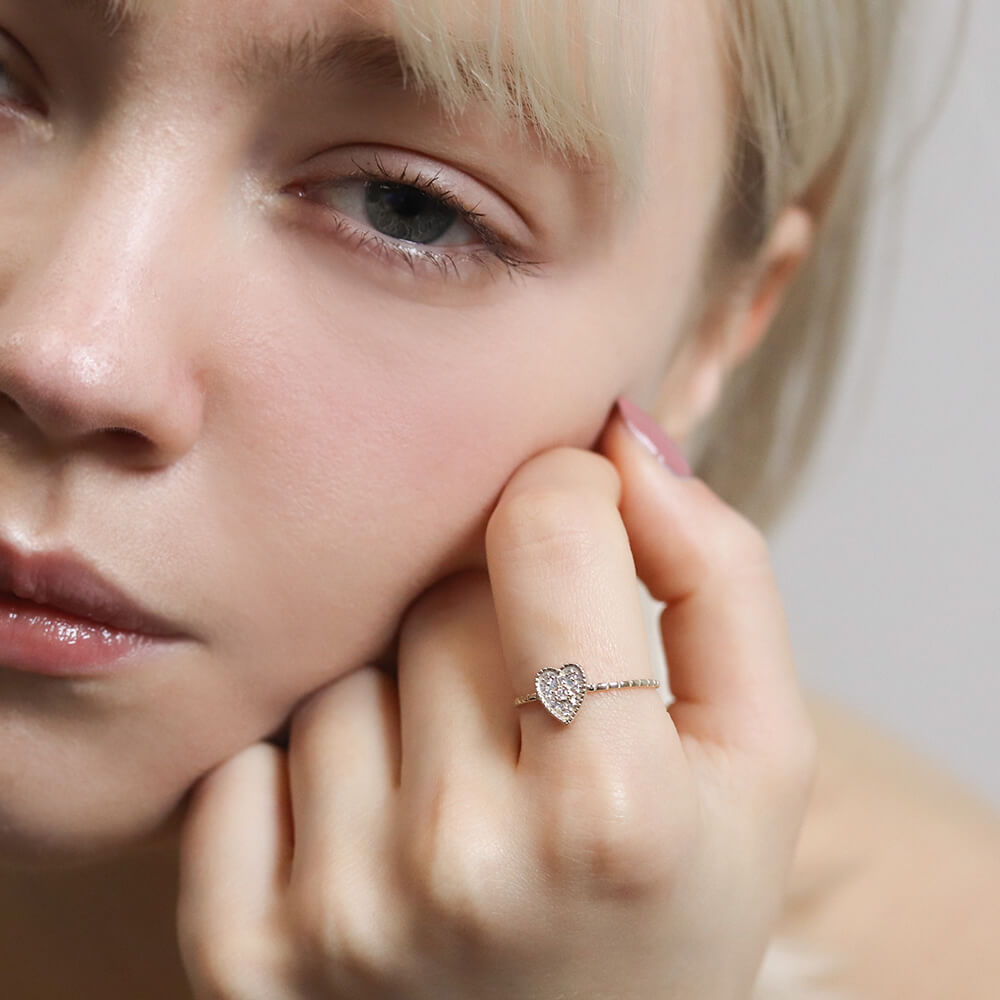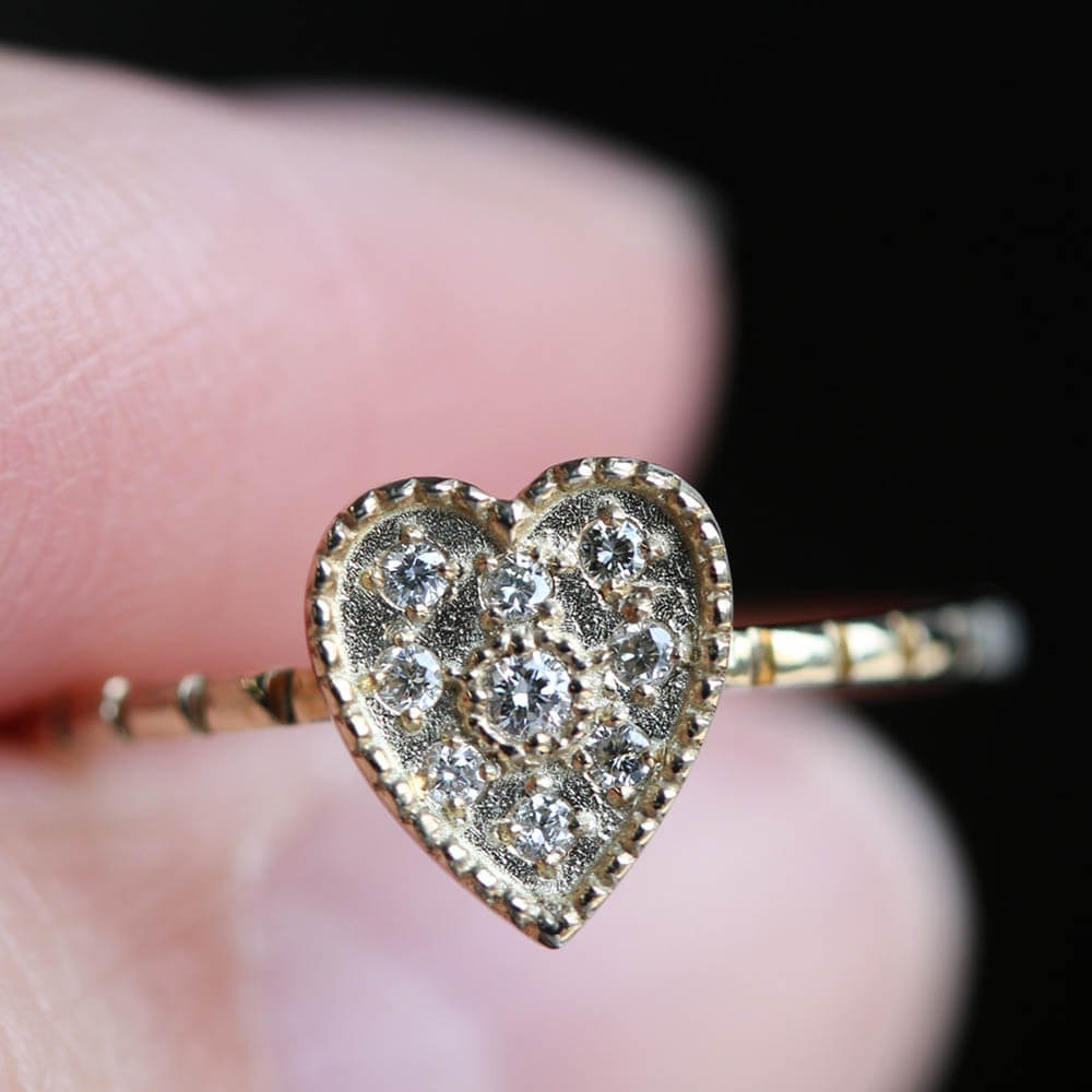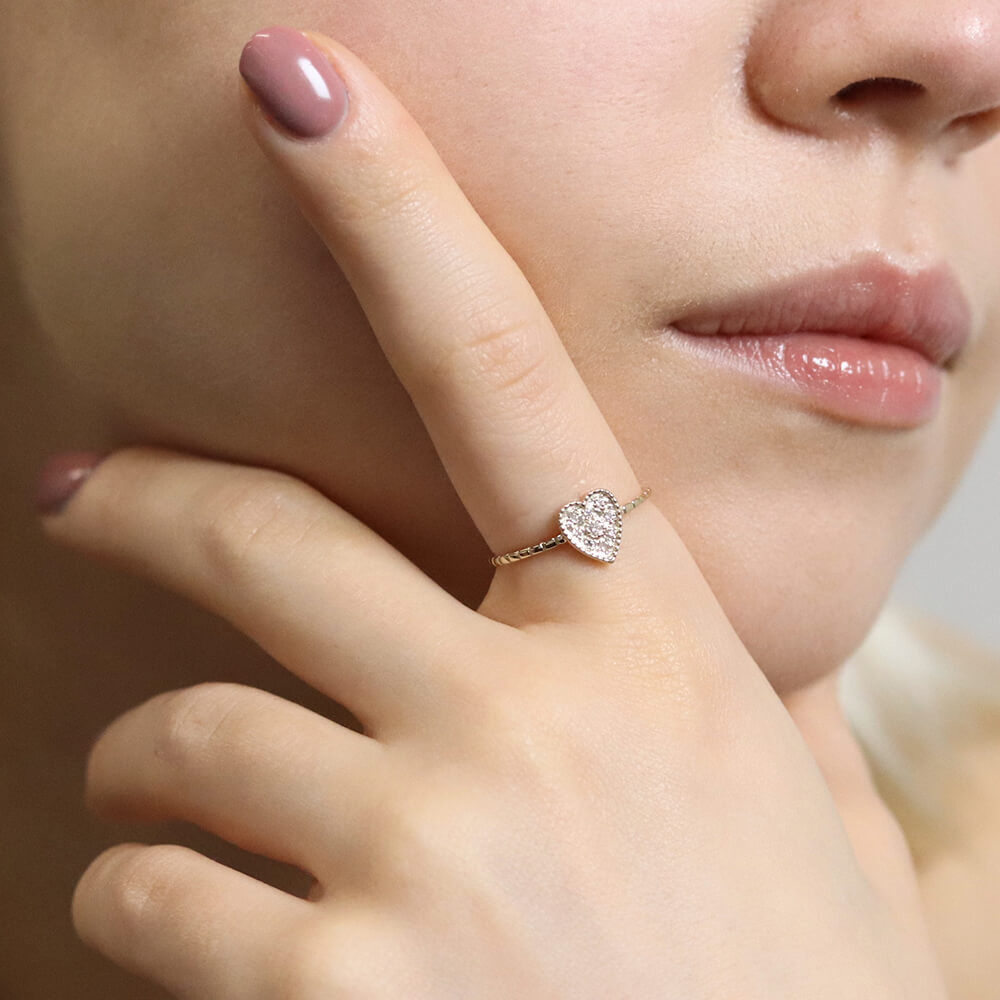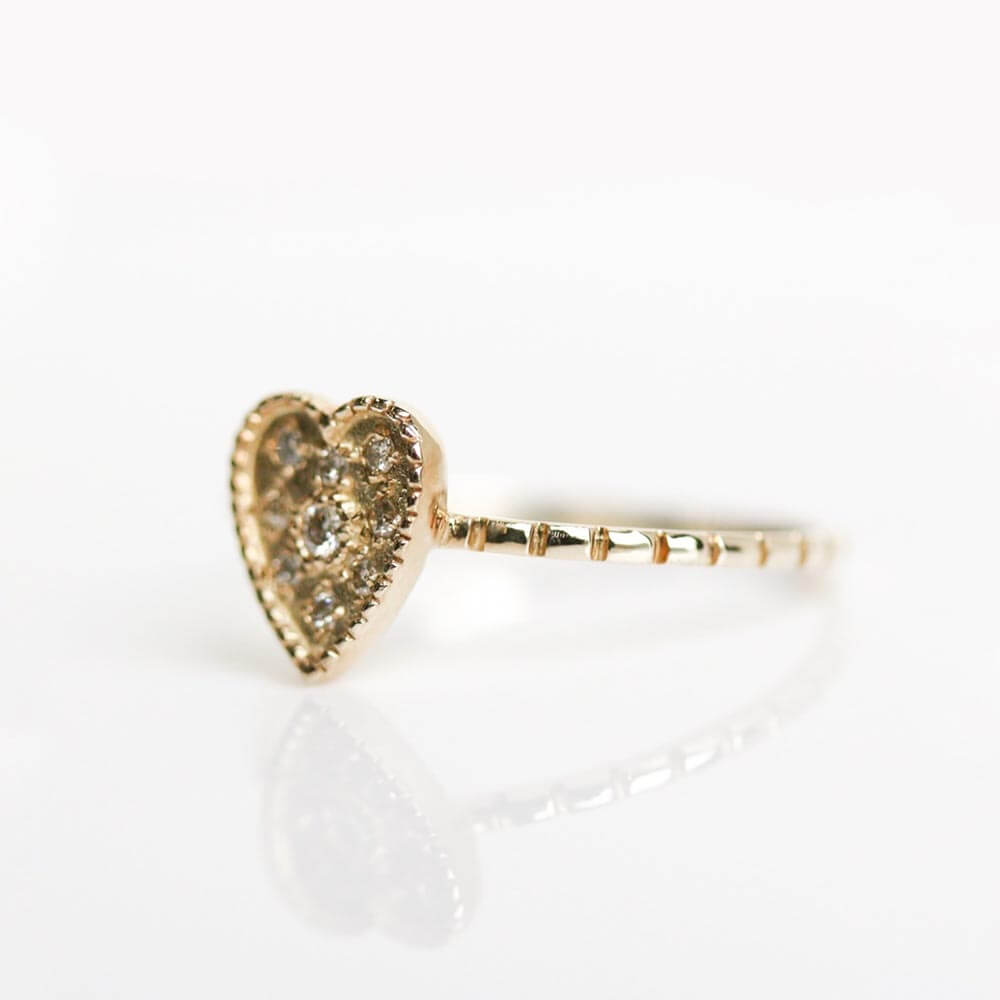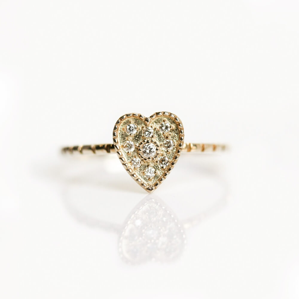 繊細なダイヤモンドを引き立てる、シンプルなデザインに仕上げたリング。