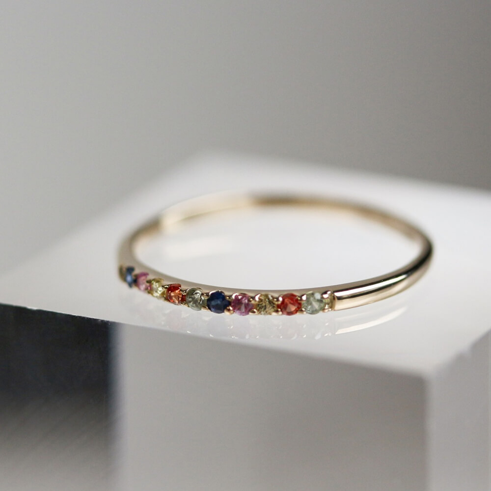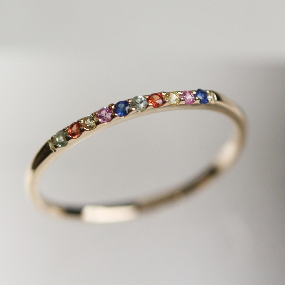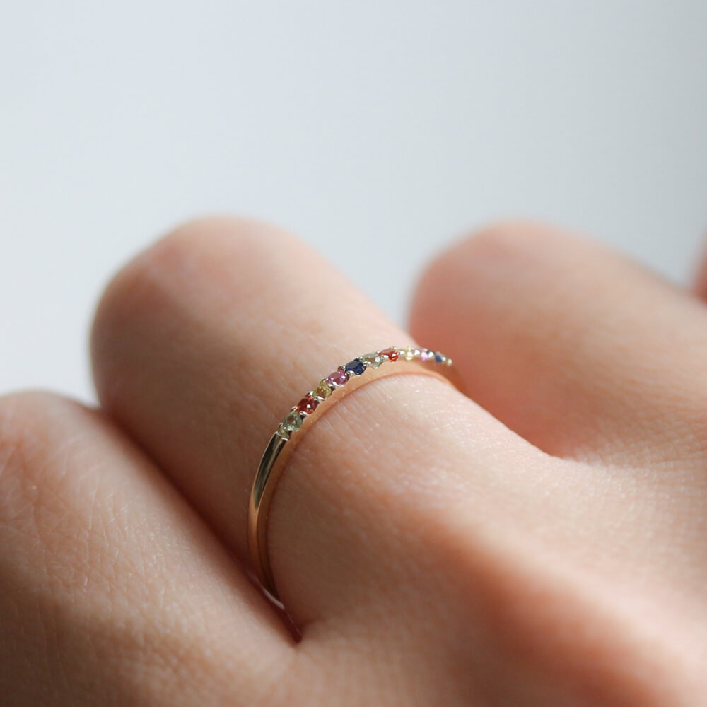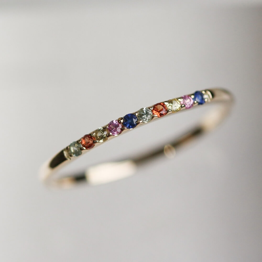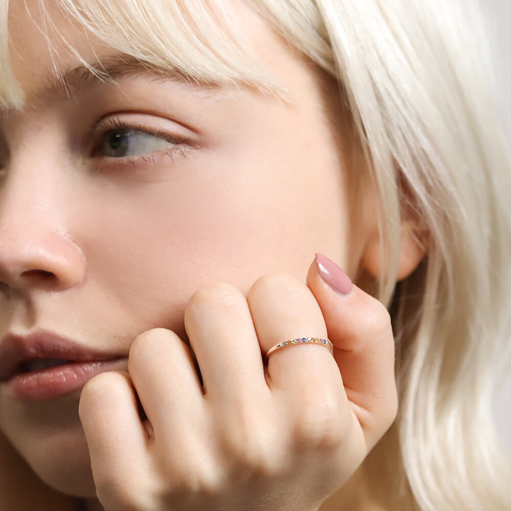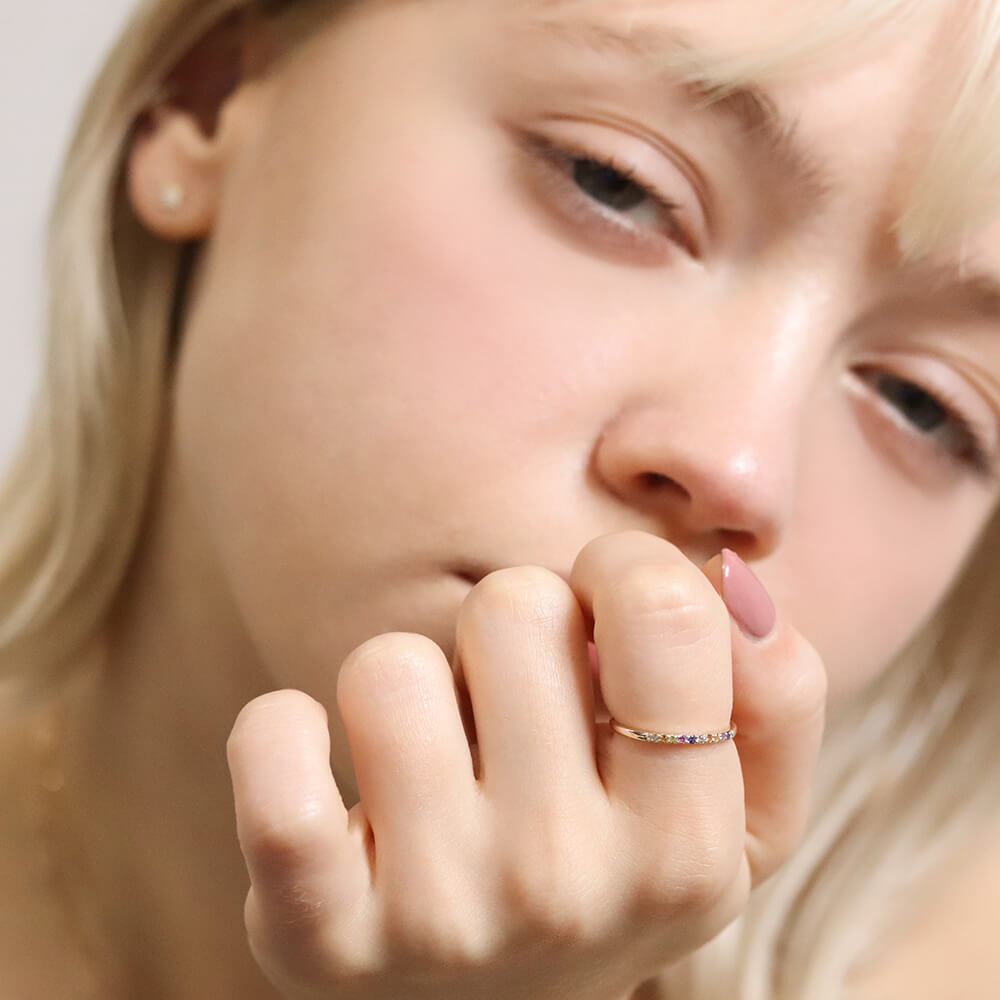 ゴールドカラーは肌馴染みがよく、カラーストーンピアスとも会わせたいアイテム。