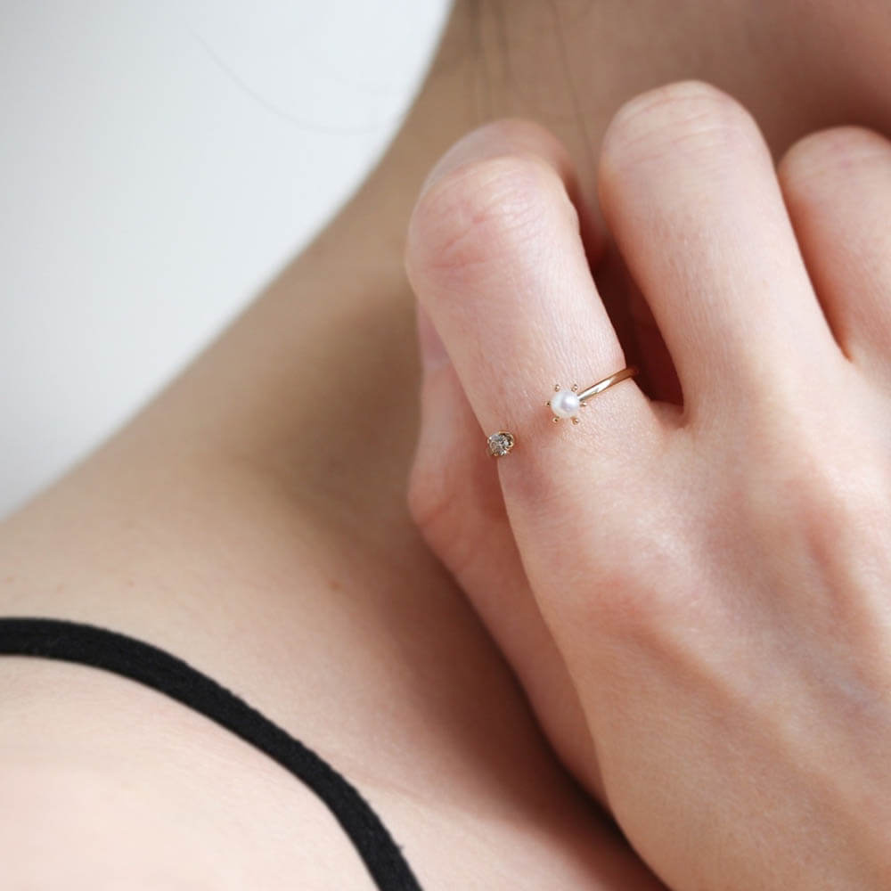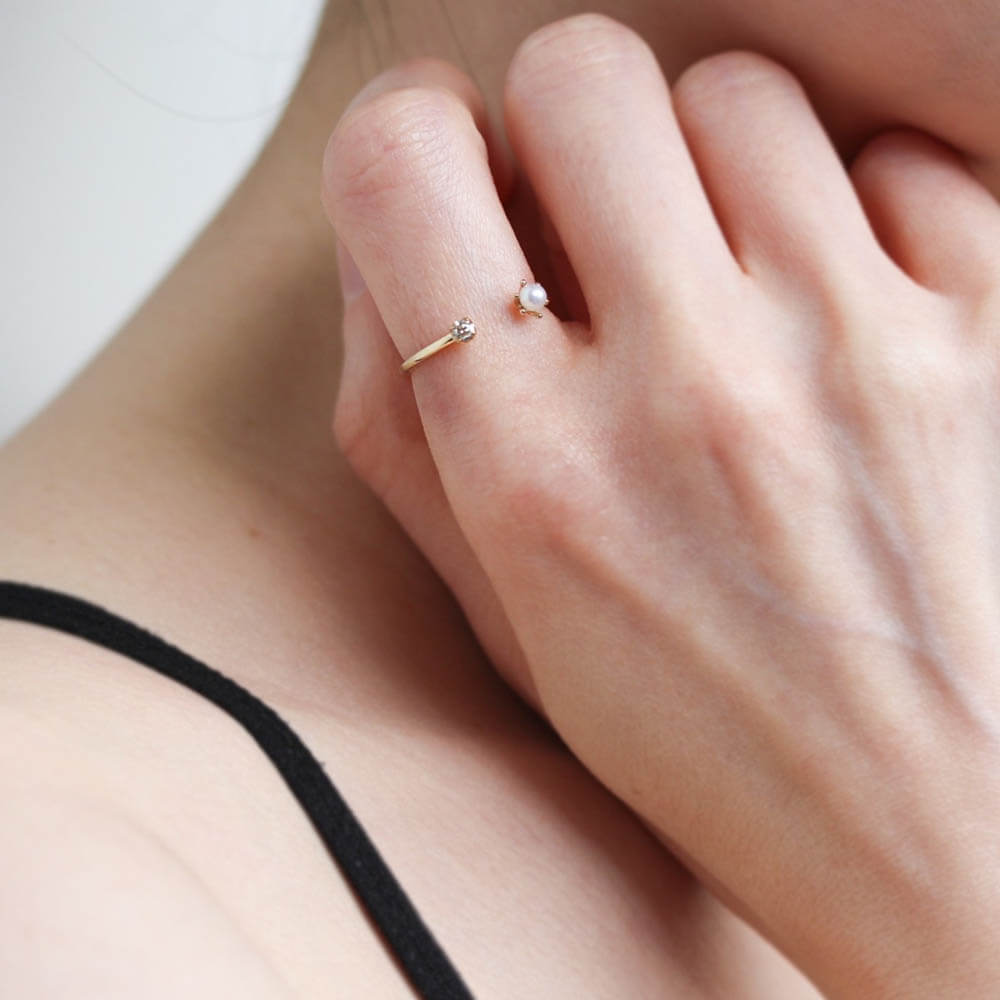 幻想的な色合いが魅力のオパールを不揃いに配したリング。不揃いに並べたことで立体感が生まれ、すっきりとした手元を演出してくれます。シーンを選ばず、毎日身につけたいデザインです。
