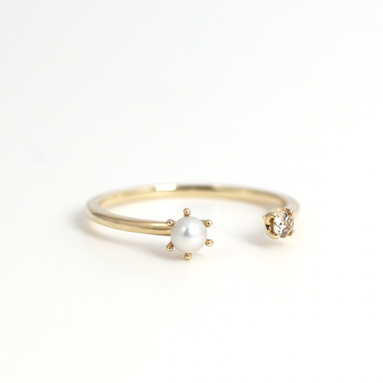 シャンパンダイヤモンド / パール フォーク リング | K10YG