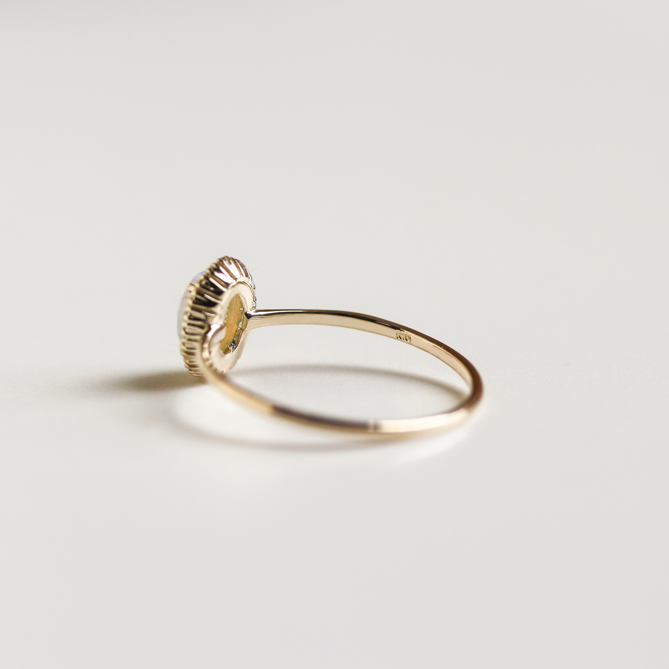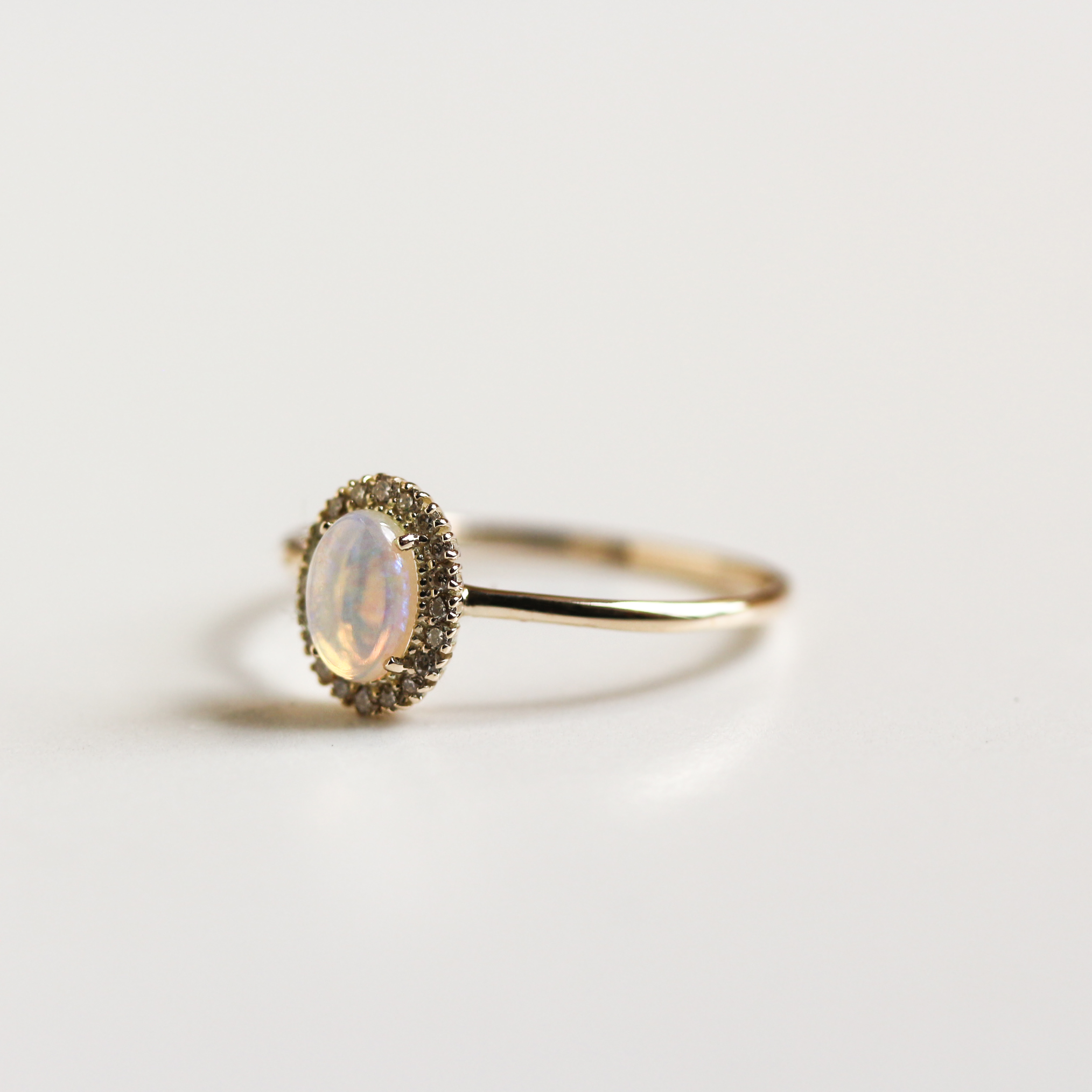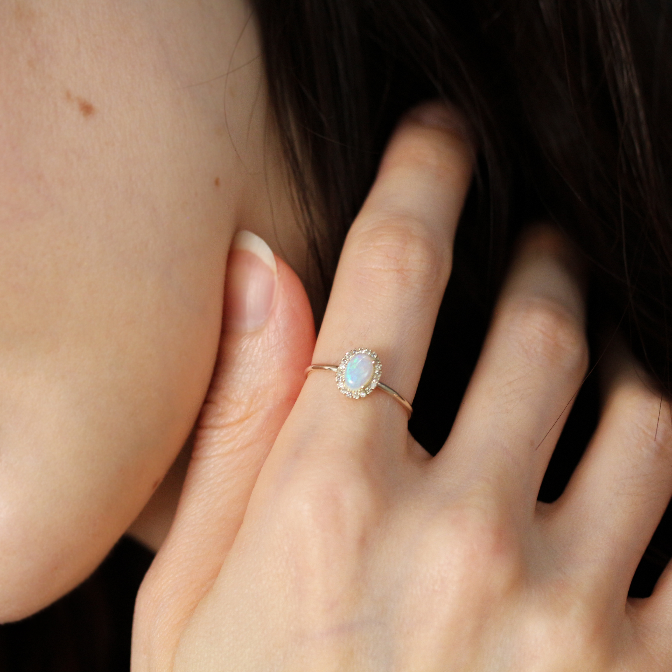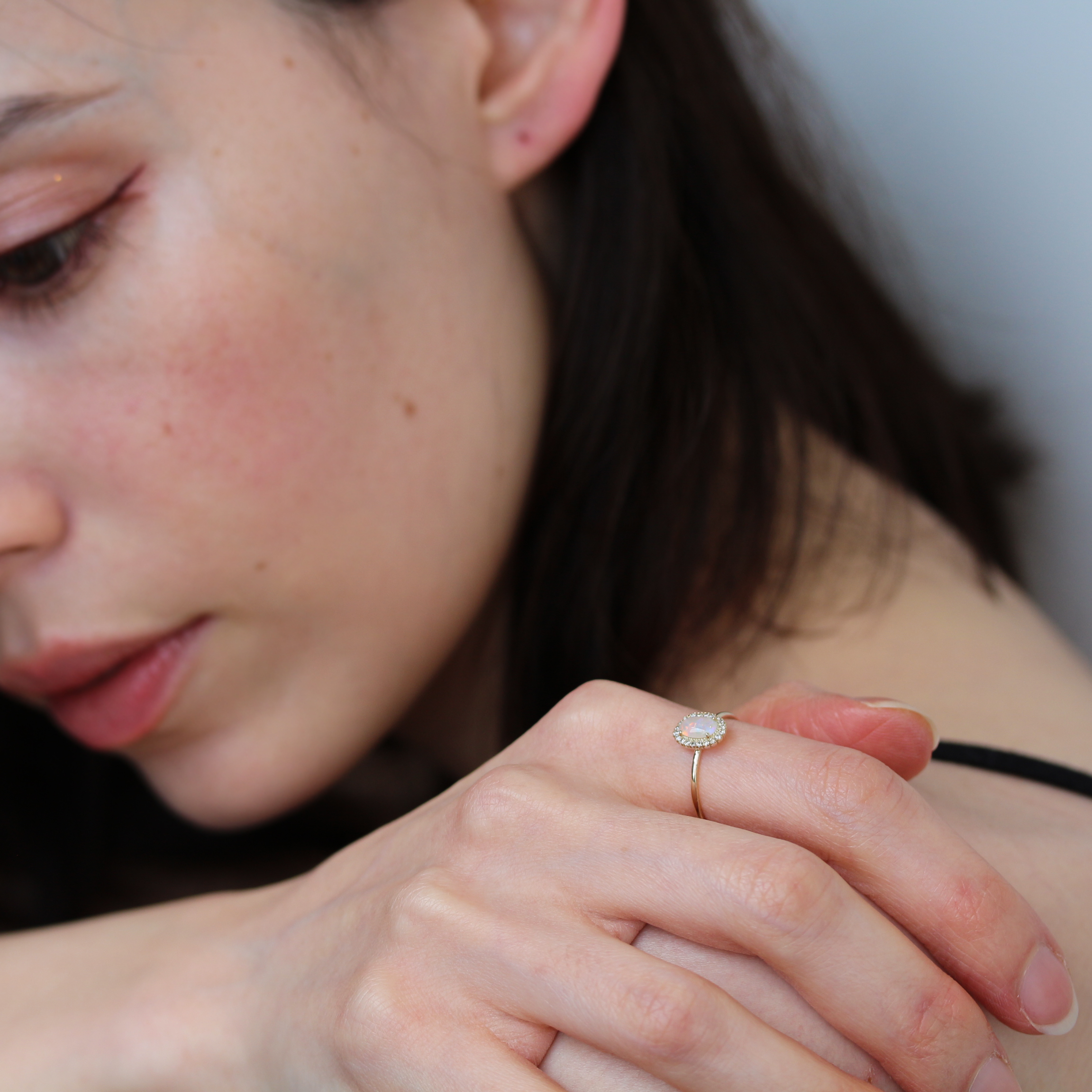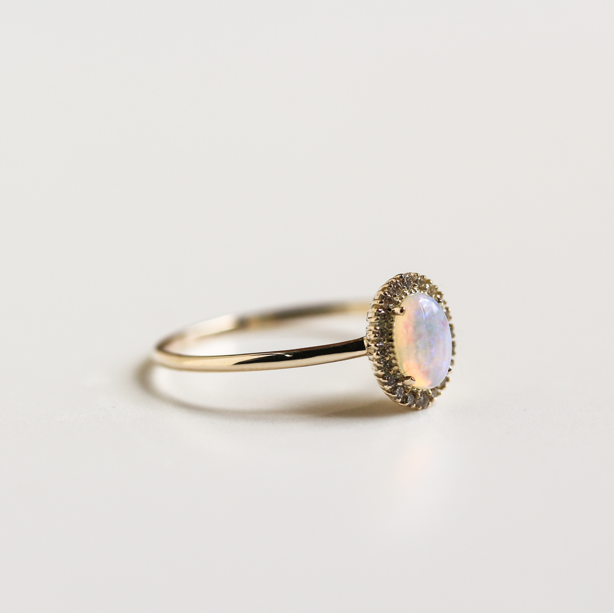 周囲にダイヤモンドを取り巻く事で、オパールを引き立たせ、より上品な印象に。