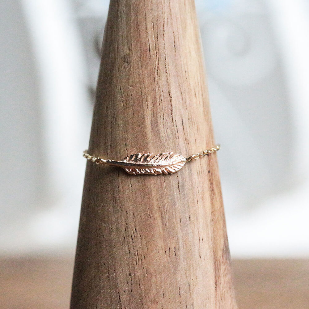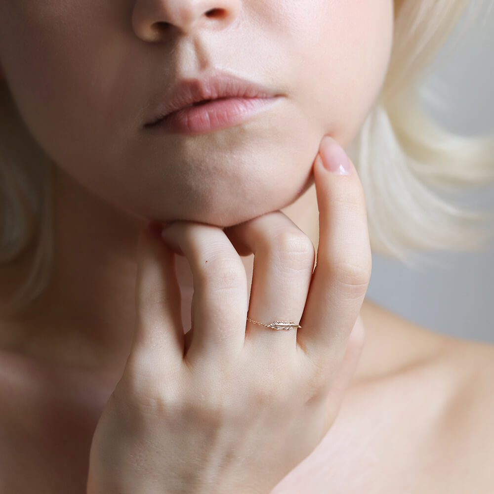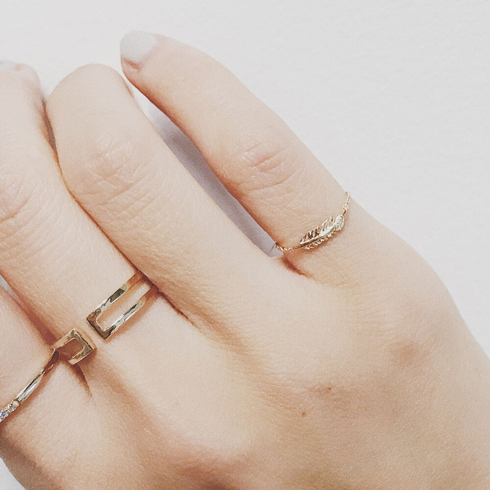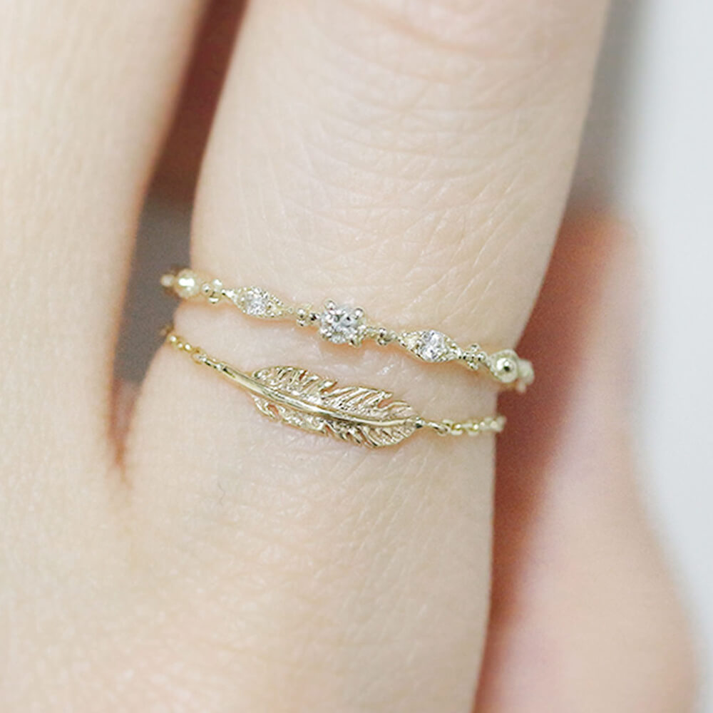 繊細な模様と華奢なデザインが大人女性らしいフェザーチェーンリング。
