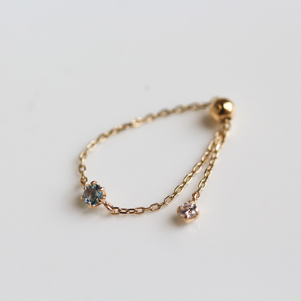 アジャスター先端で揺れるキュービックジルコニア、繊細なゴールドチェーンが天然石の鮮やかな色味をより輝かせてくれます。