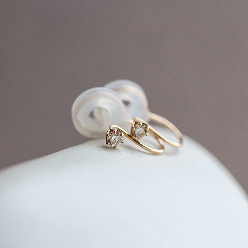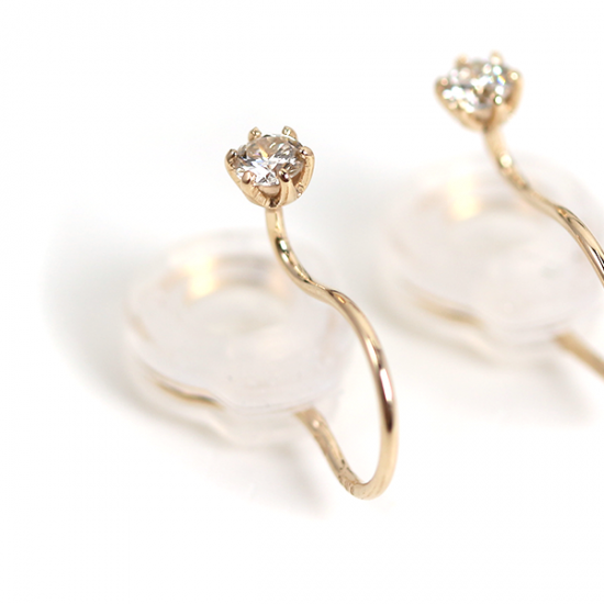 長時間付けていても痛くならず、普段使いにぴったりな一粒ダイヤイヤリング。