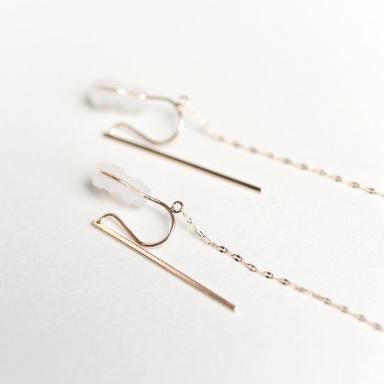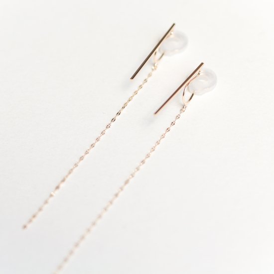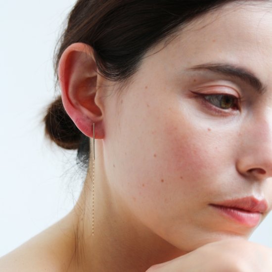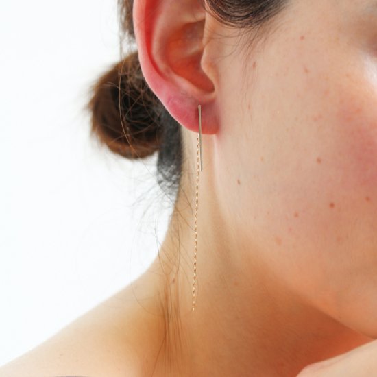 スタイリッシュなデザインながら長めのチェーンが揺れ、華奢感が女性らしさを引き立てます。