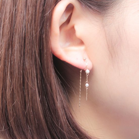 柔らかな印象のパールジュエリーをカジュアルスタイルにも気軽に取り入れられます。