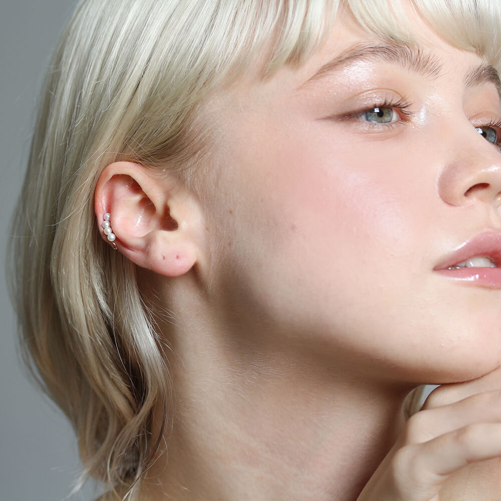 上品なパールを4粒、贅沢にあしらったイヤーカフ。
