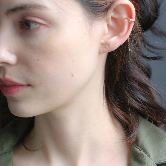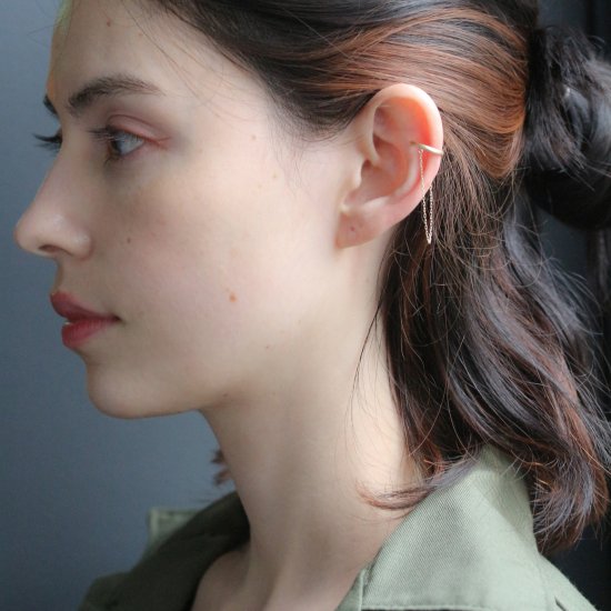 華奢なチェーンと合わさったシンプルなイヤーカフ。