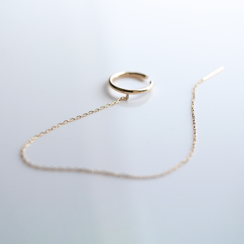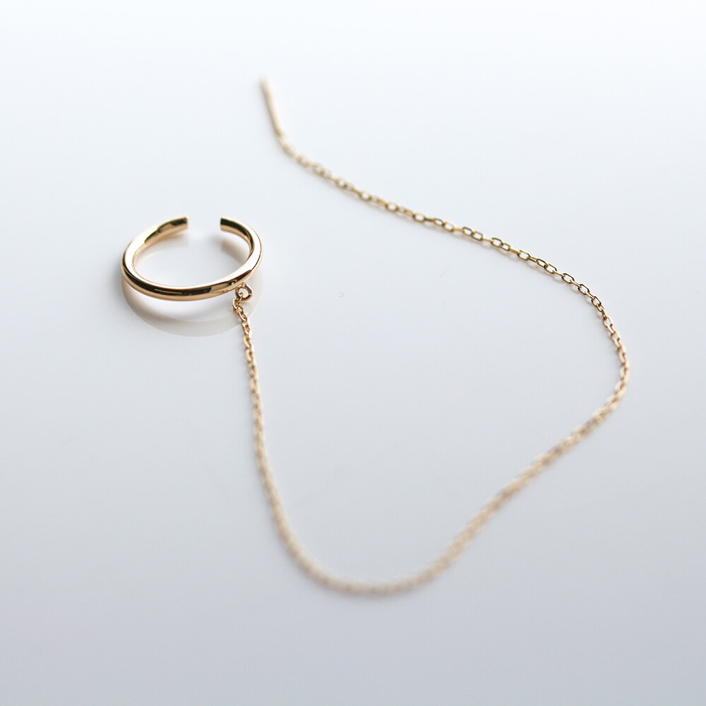 ロングチェーンが特徴的なデザインのイヤーカフ。