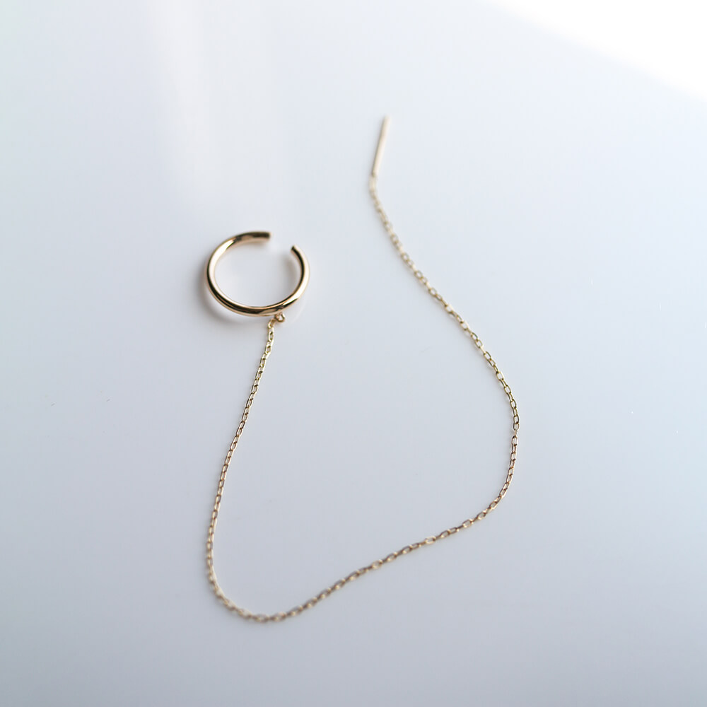 ゴールド チェーン イヤーカフ ピアス | K10YG 【片耳用】