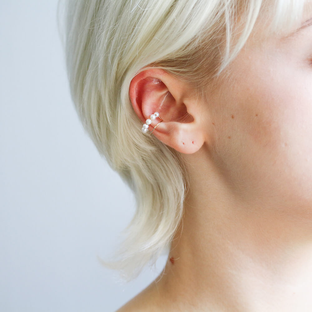 気軽に楽しめるイヤーカフに、上品なパールをセッティング。