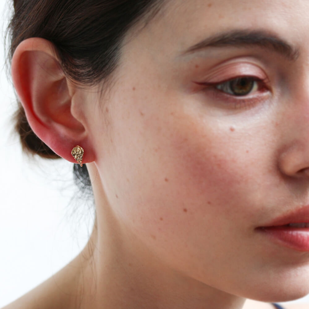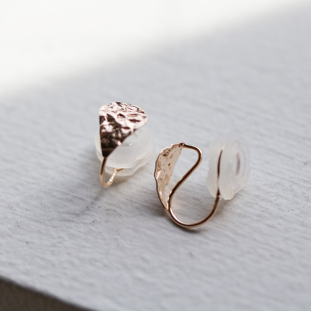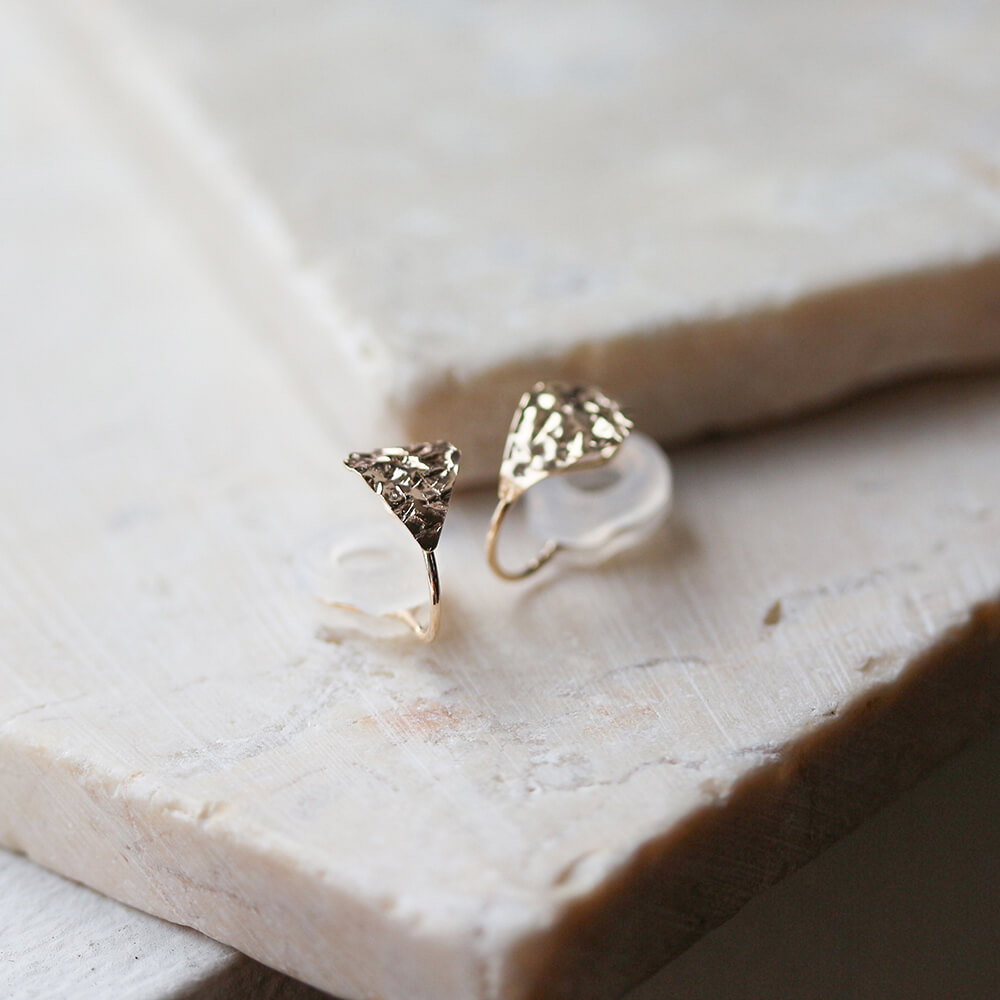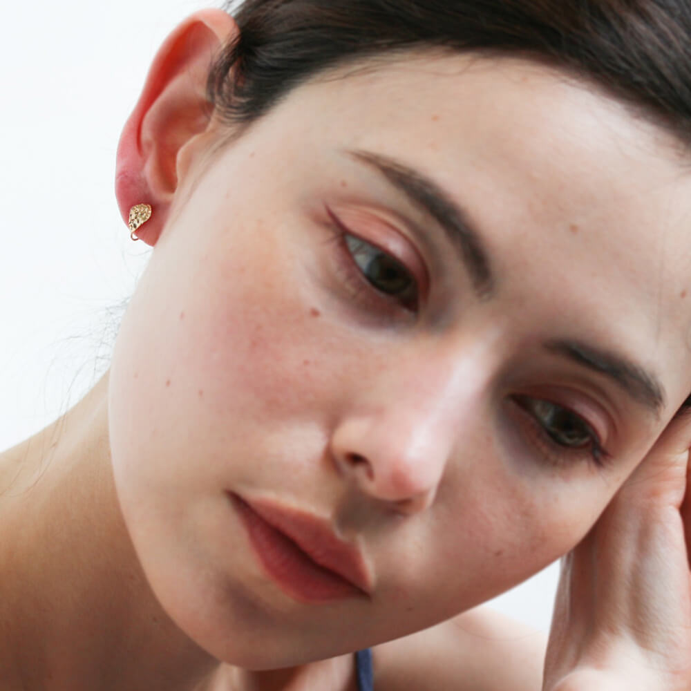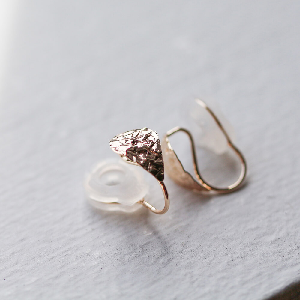 耳たぶにぴたっとおさまる、リーフデザインのイヤリング。