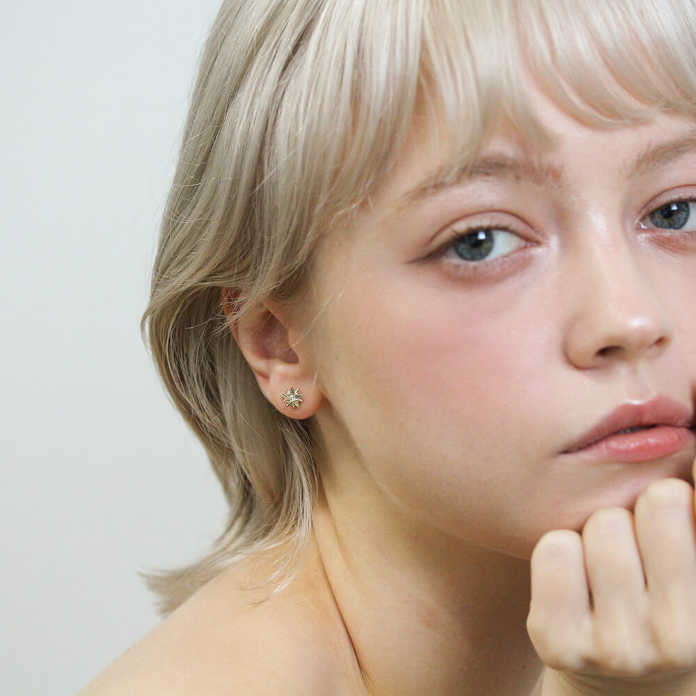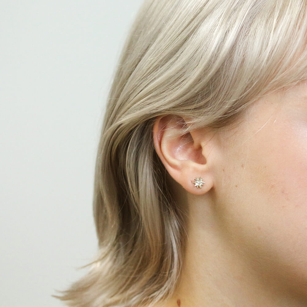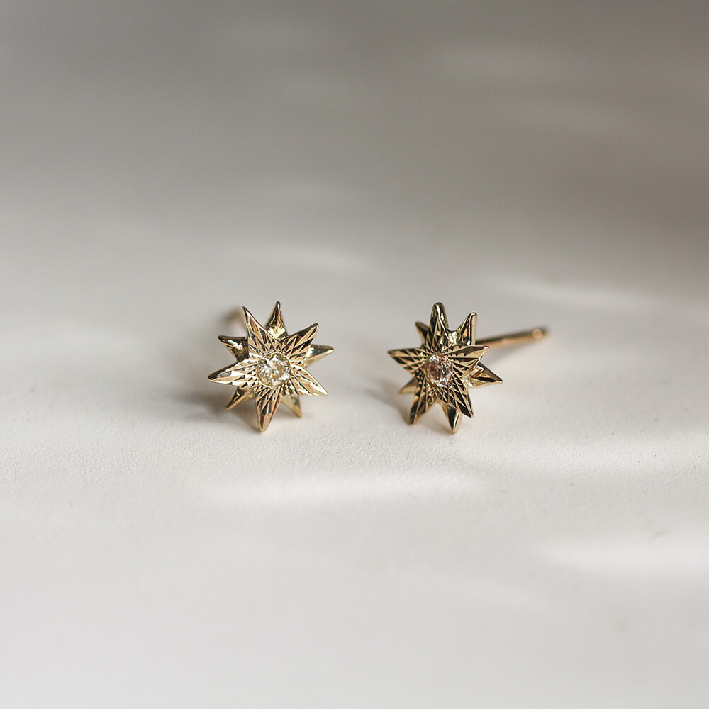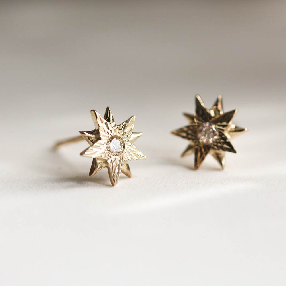 六芒星を象った10金モチーフの中心に、ダイヤモンドを1石あしらったピアス。
