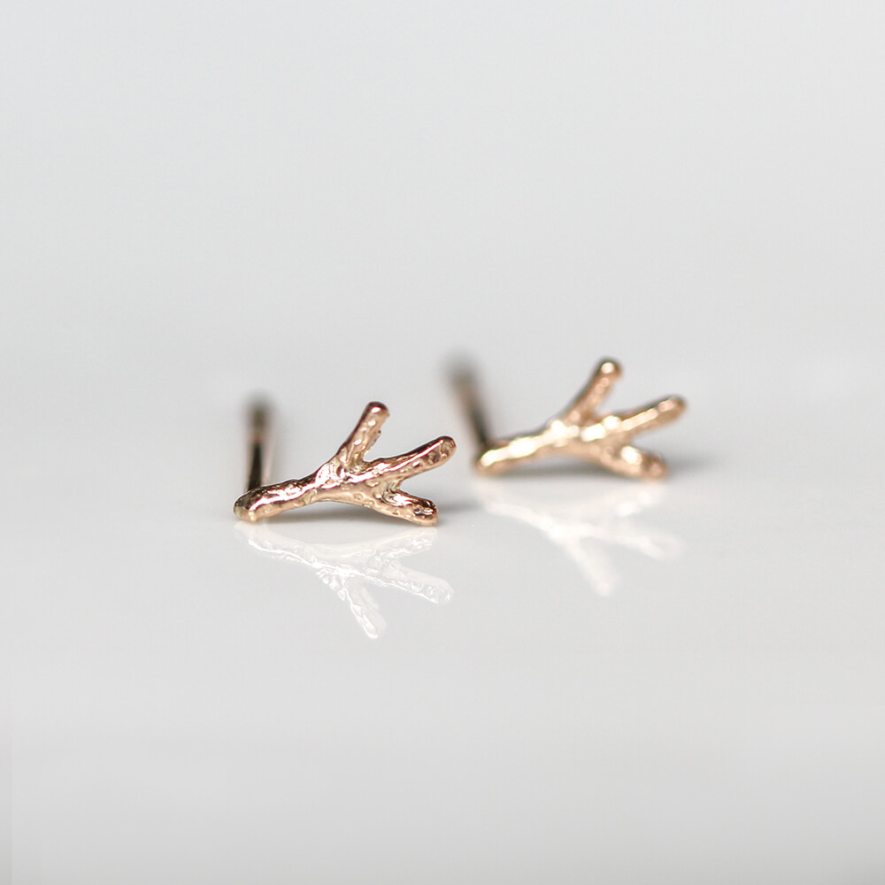 鳥あしあとのスタッドピアス。