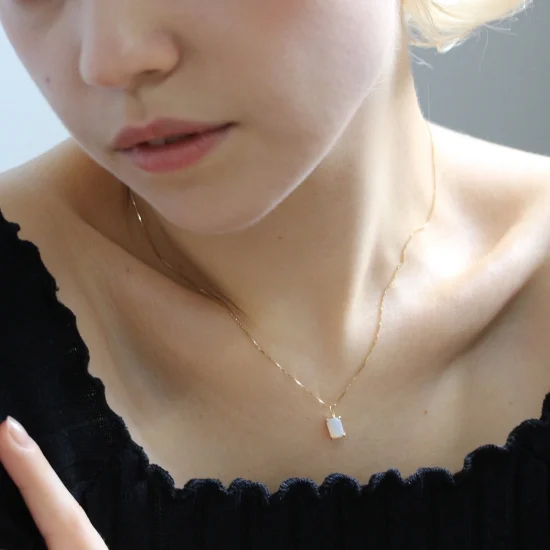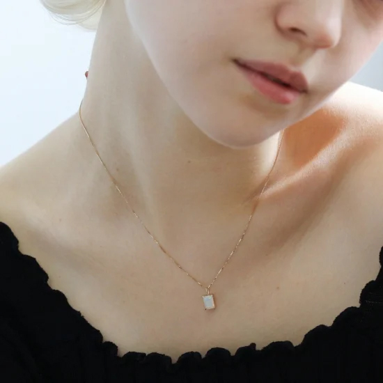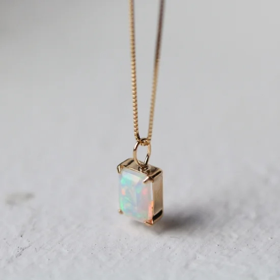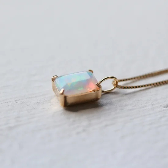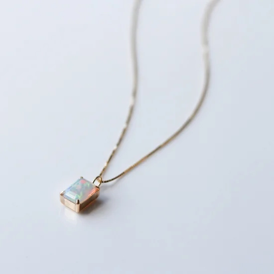 スタイリッシュな長方形のカットが、遊色を放つオパールの魅力をより引き立てます。