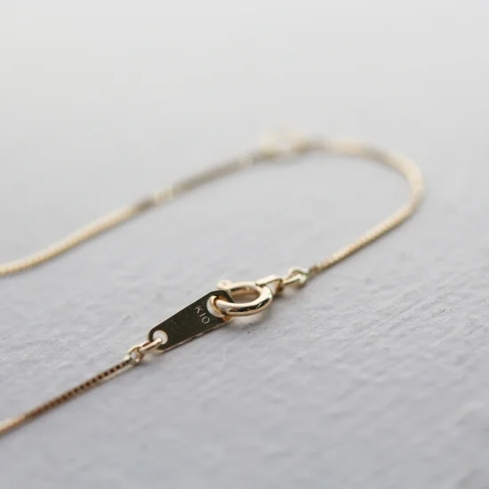 ゴールドのベネチアンチェーンとの組み合わせが、繊細で上品な印象に。