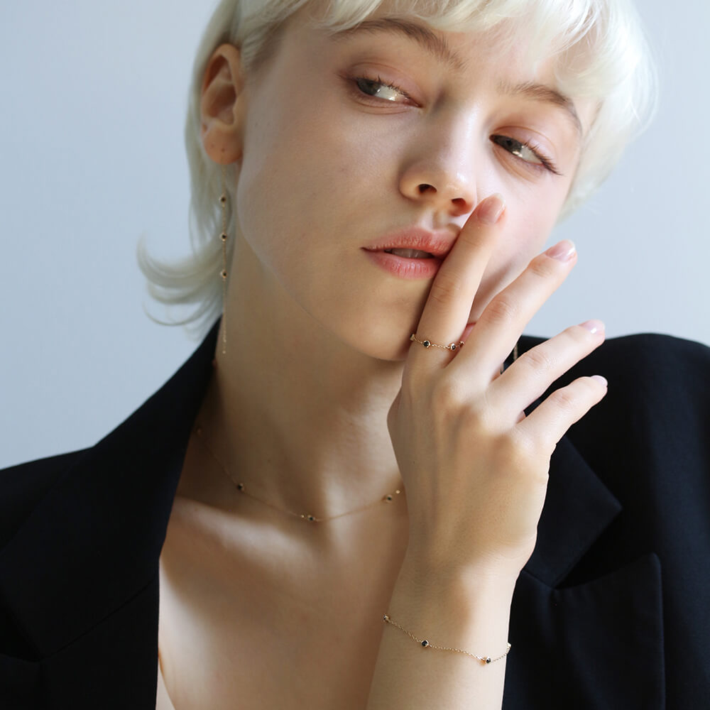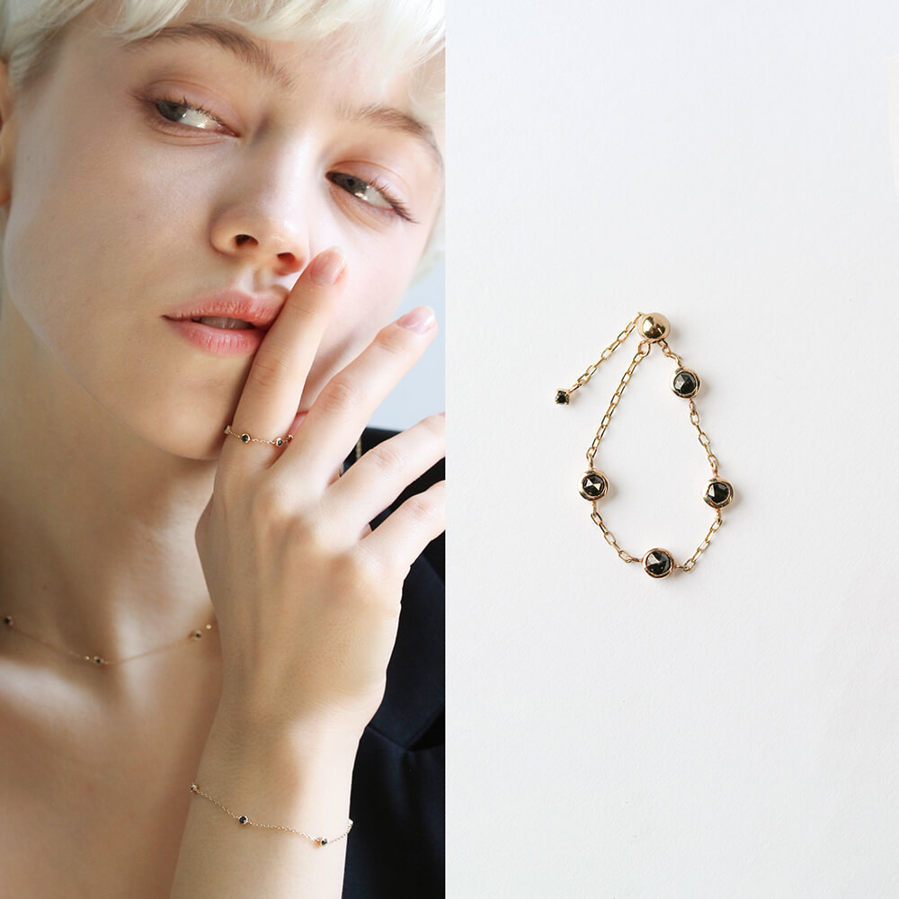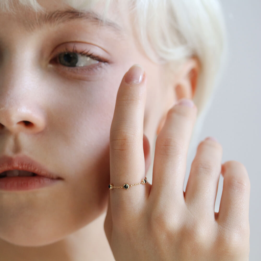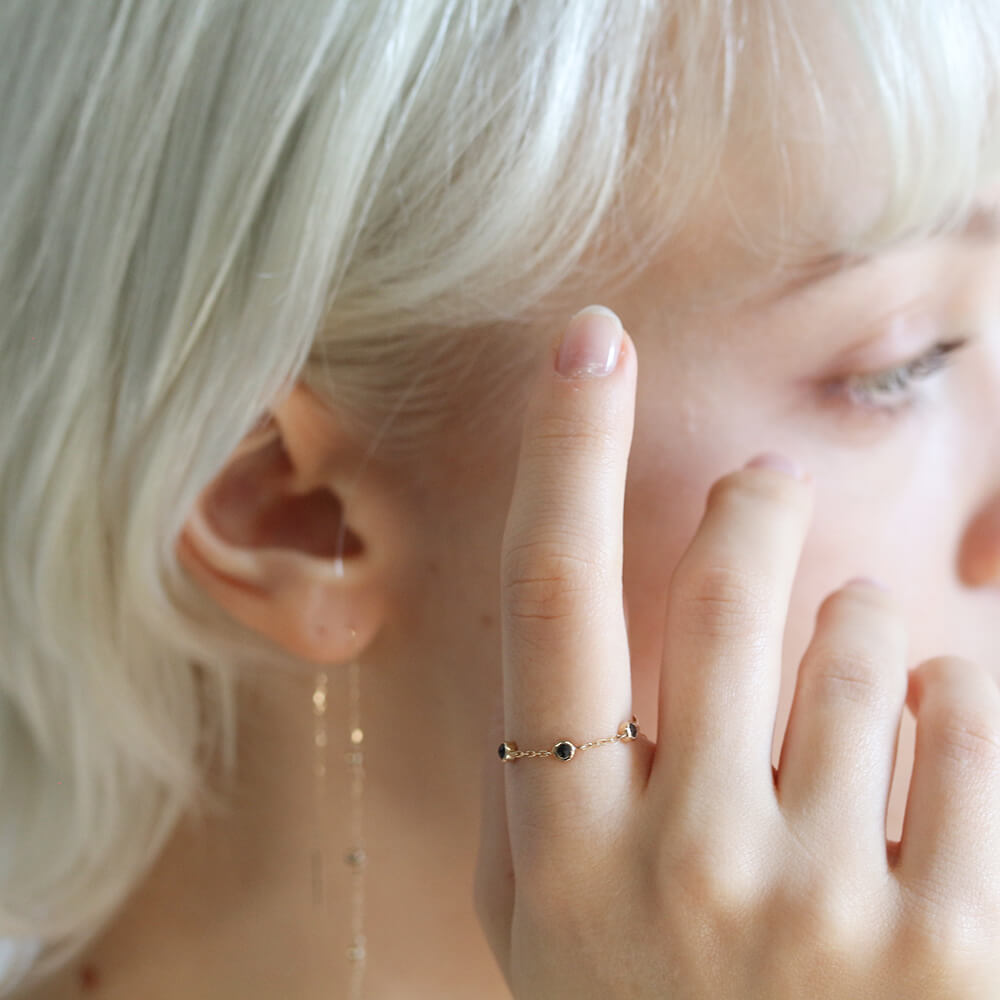 ブラックダイヤモンドをあしらったステーションチェーンリング。