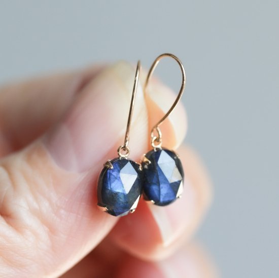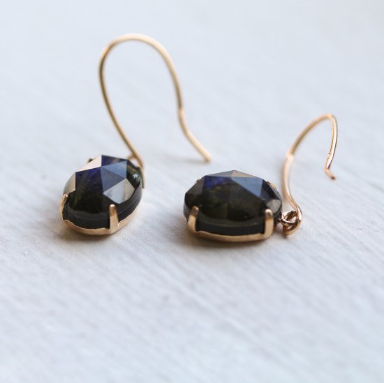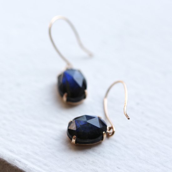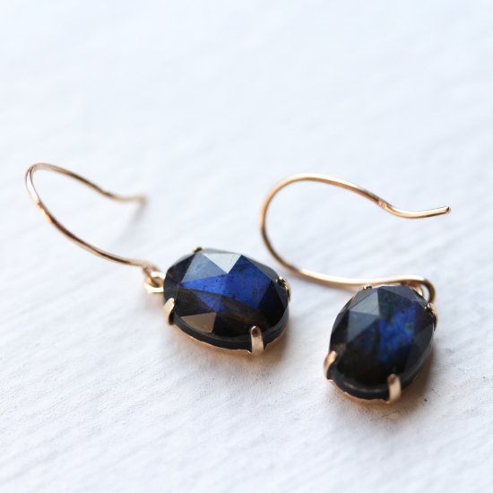 ラブラドライト / オニキス ピアス | K10YG