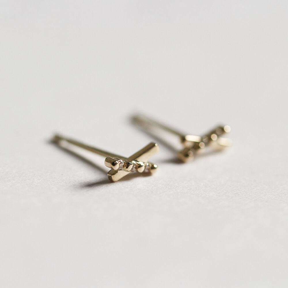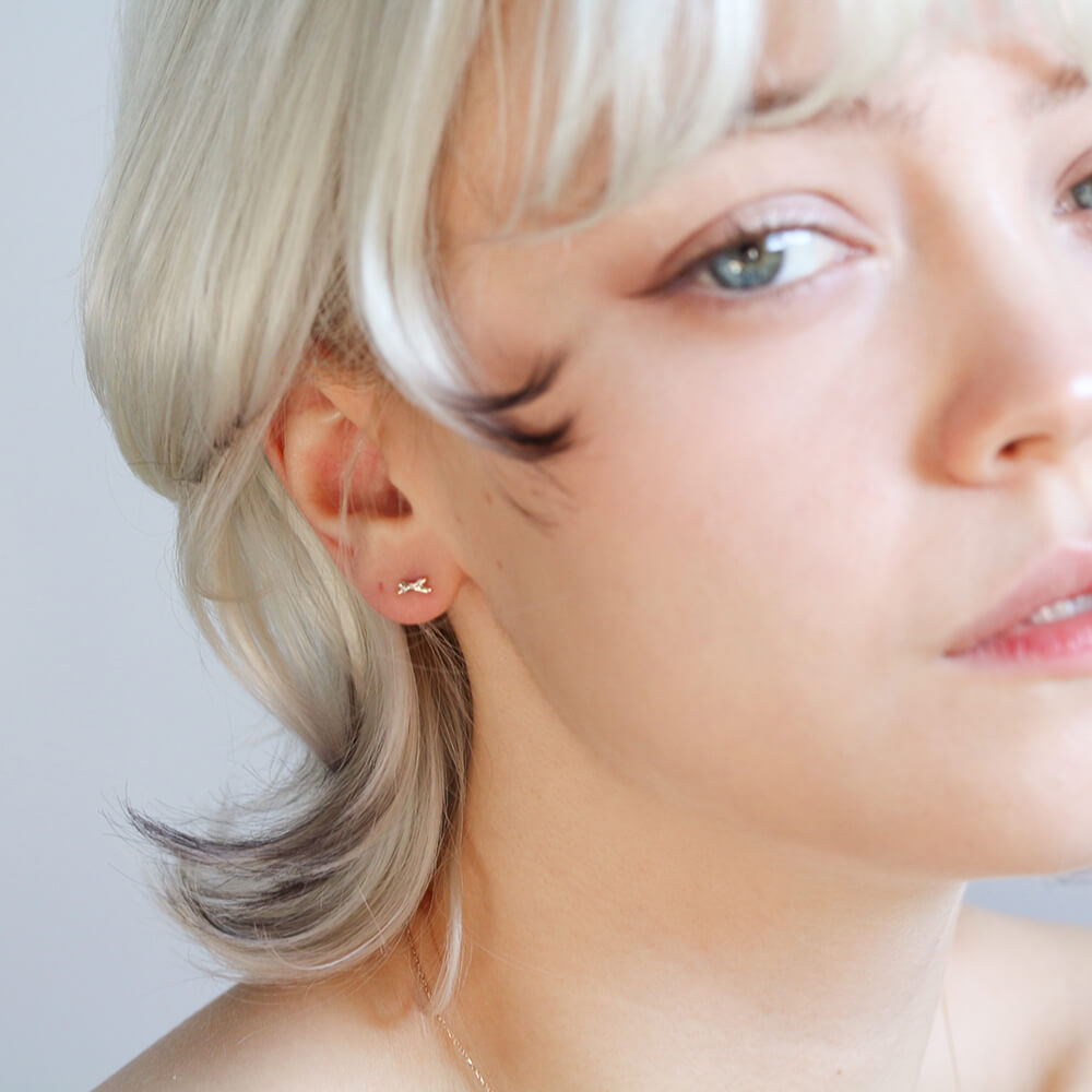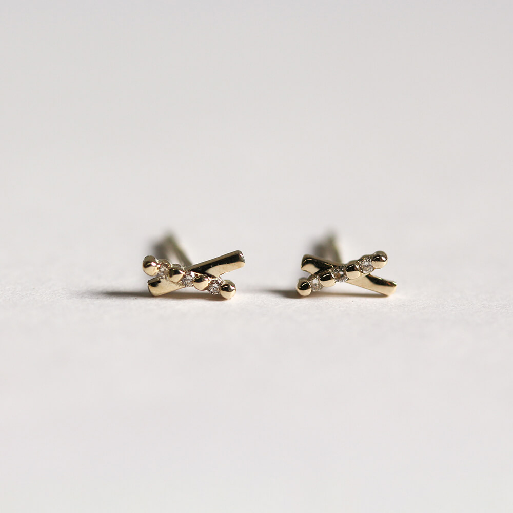 ダイヤモンドとゴールドがクロスするモチーフピアス。