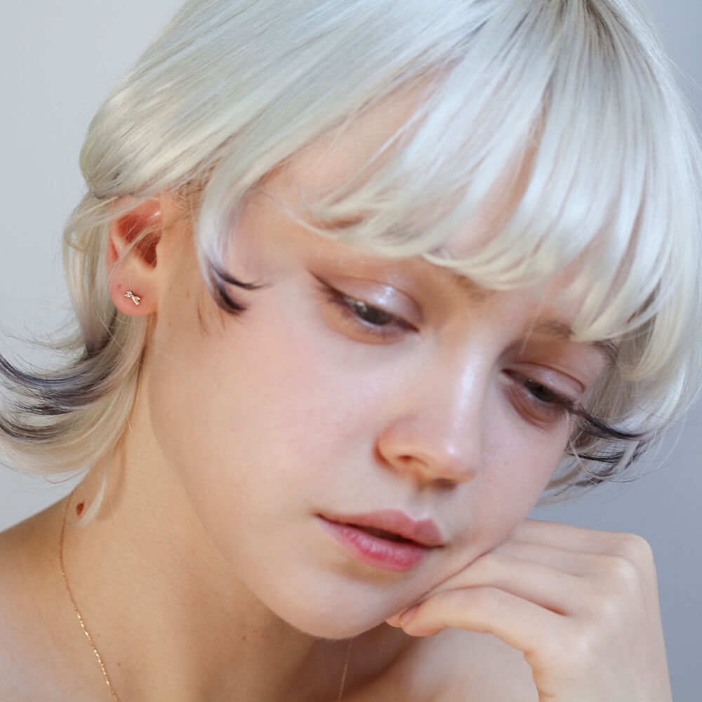 お出かけの際は、ピアスとのコーディネートでアレンジして楽しめます。