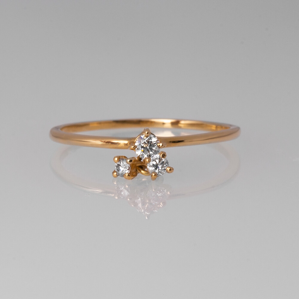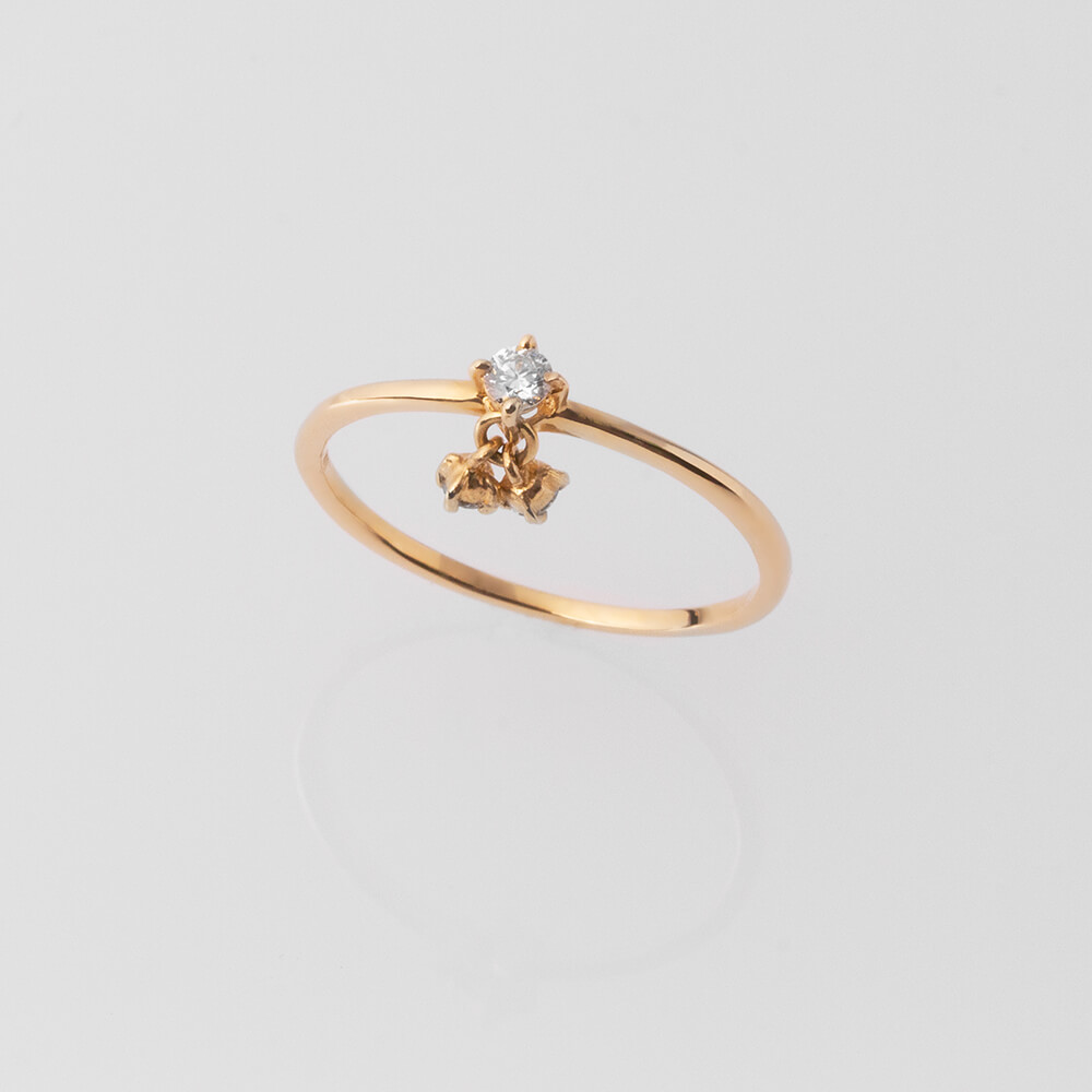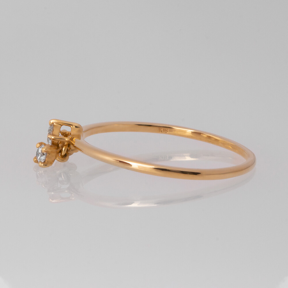 2石のダイヤモンドは揺れ動くデザイン。揺れ動くことで光が入り、より輝きを増します。