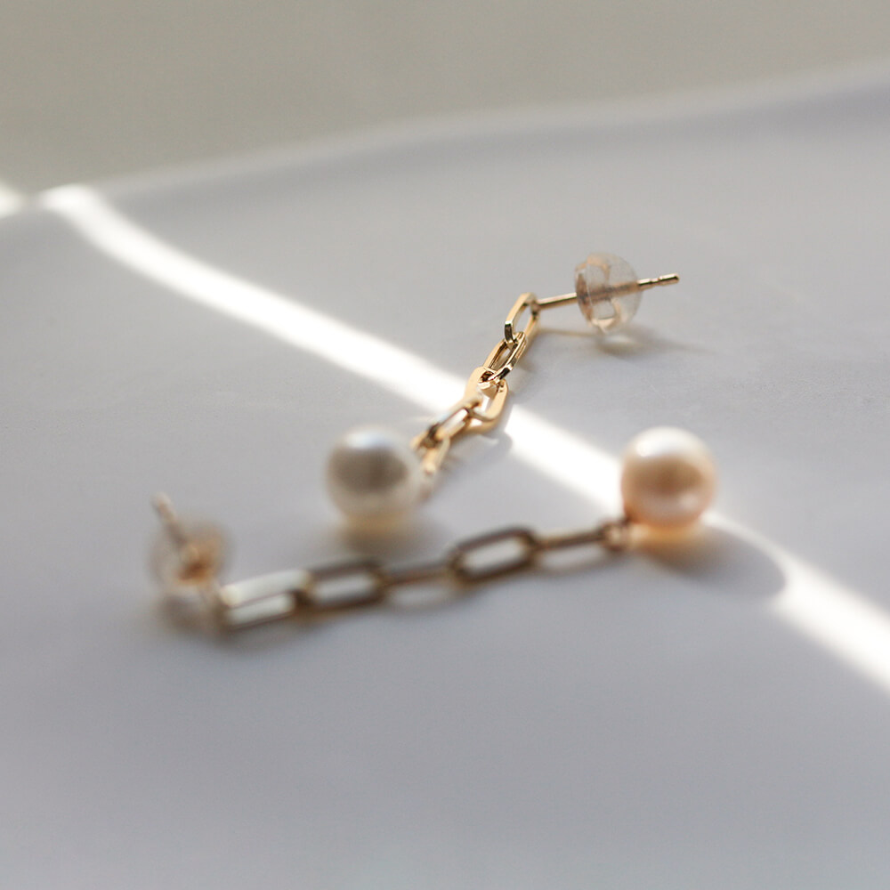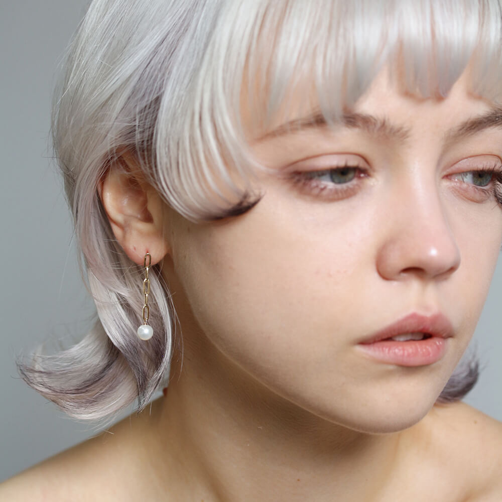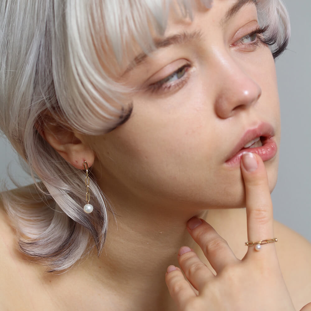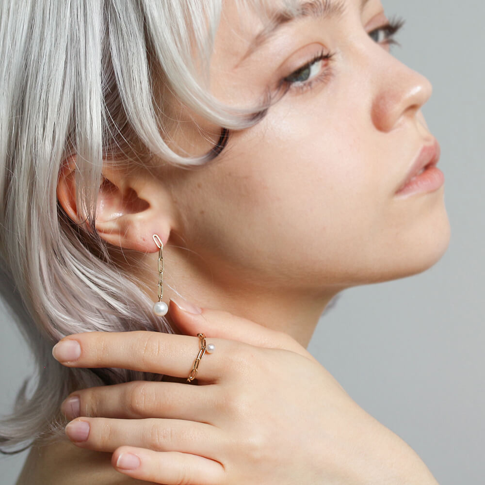 ゴールドチェーンの煌めきが、耳元をより華やかに。