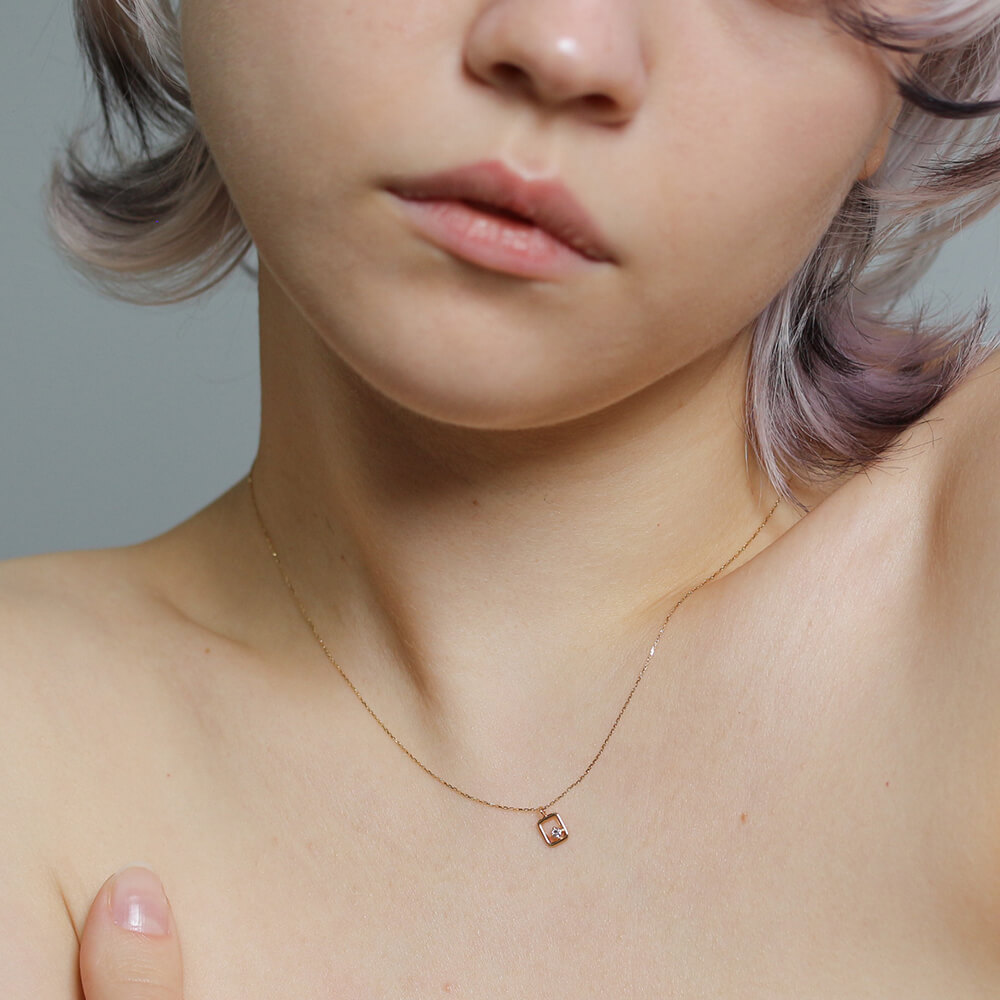 スクエアフレームがダイヤモンドをより煌めかせ、デコルテに輝きを見せてくれます。
