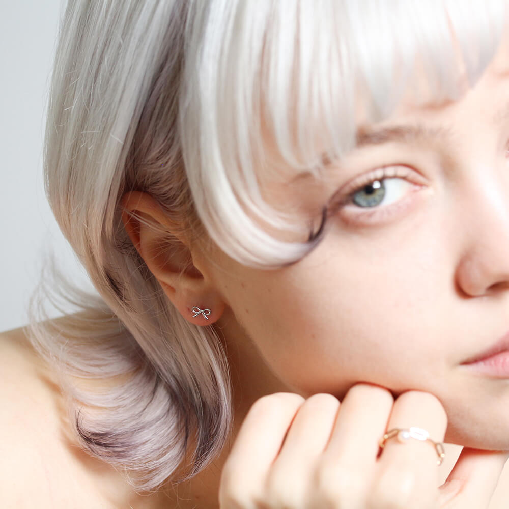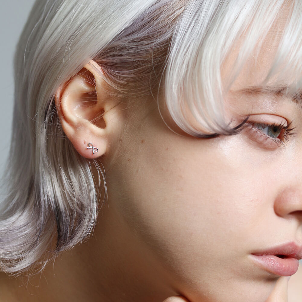 細く薄いデザインで、耳たぶに寄り添うように身につけられるプチピアス。