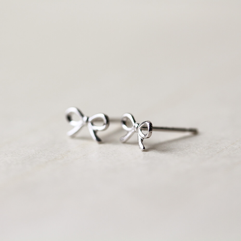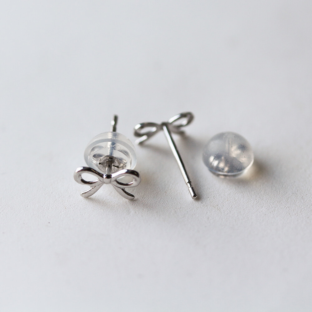 ホワイトゴールドが輝きを見せるリボンピアス。