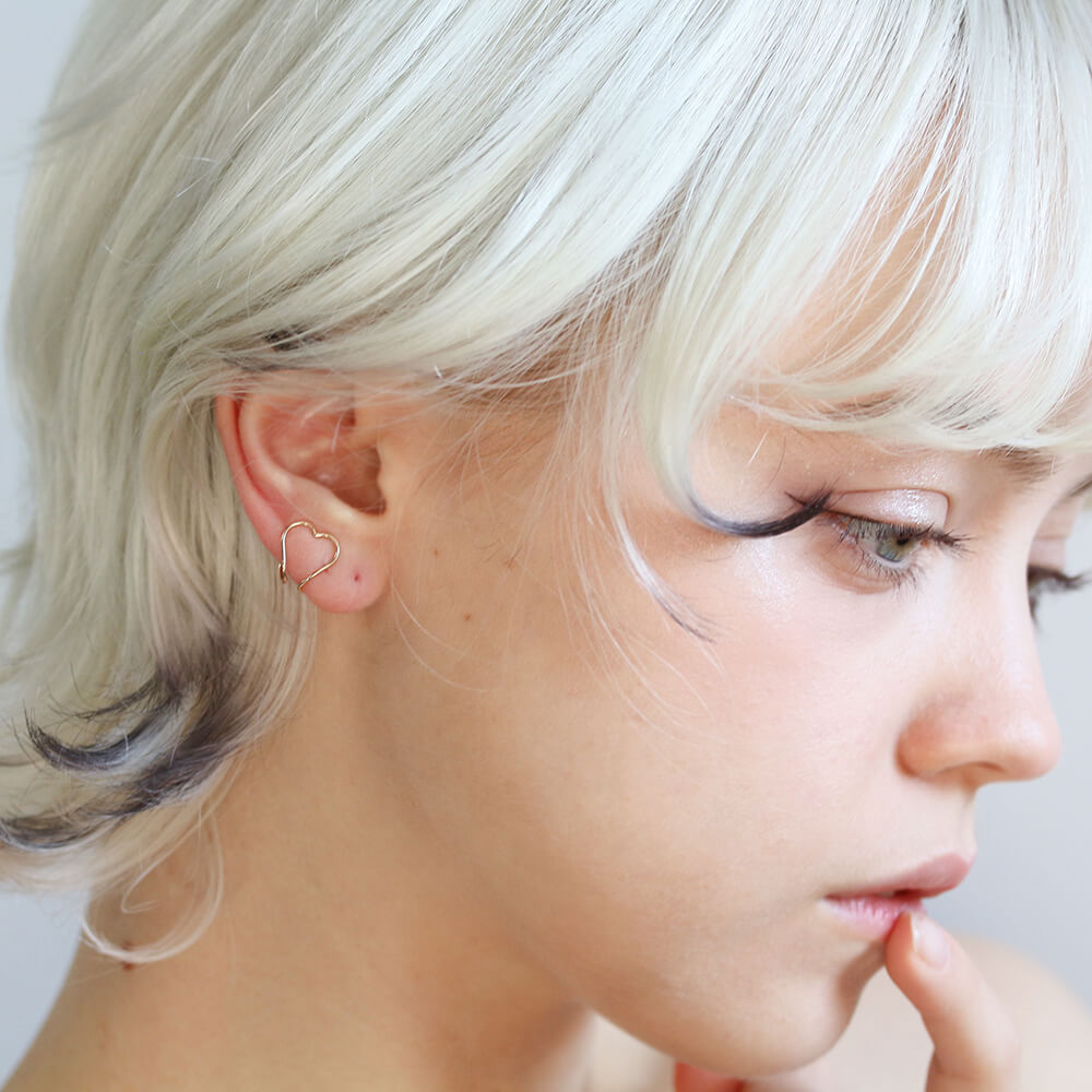 華奢なゴールドのラインで作られたハートイヤーカフ。