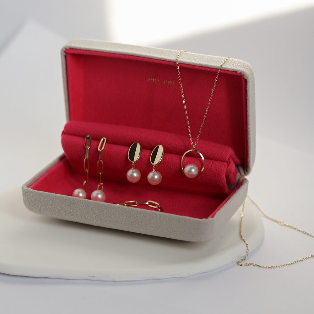 スエード調の柔らかな素材が、ジュエリーを優しく守ってくれます。
