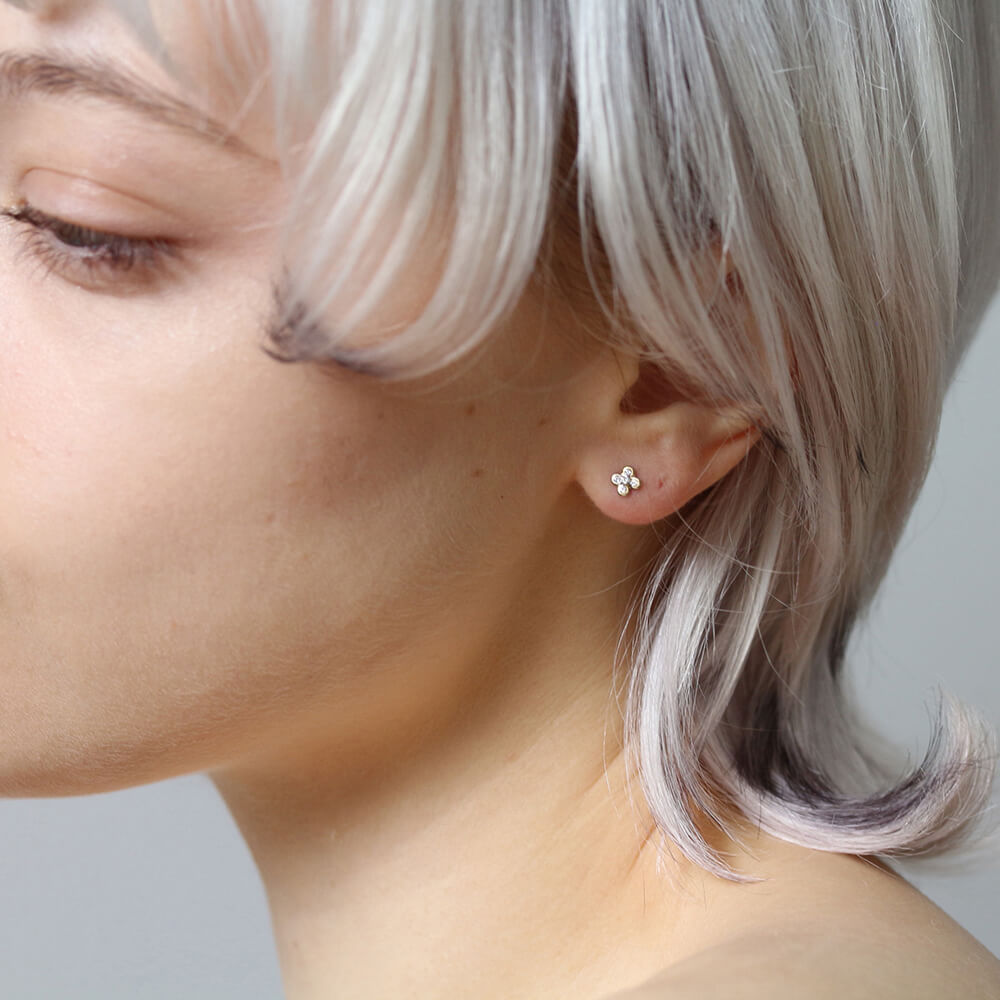 小さいながらも存在感あるデザインで、耳元を華やかに彩ります。