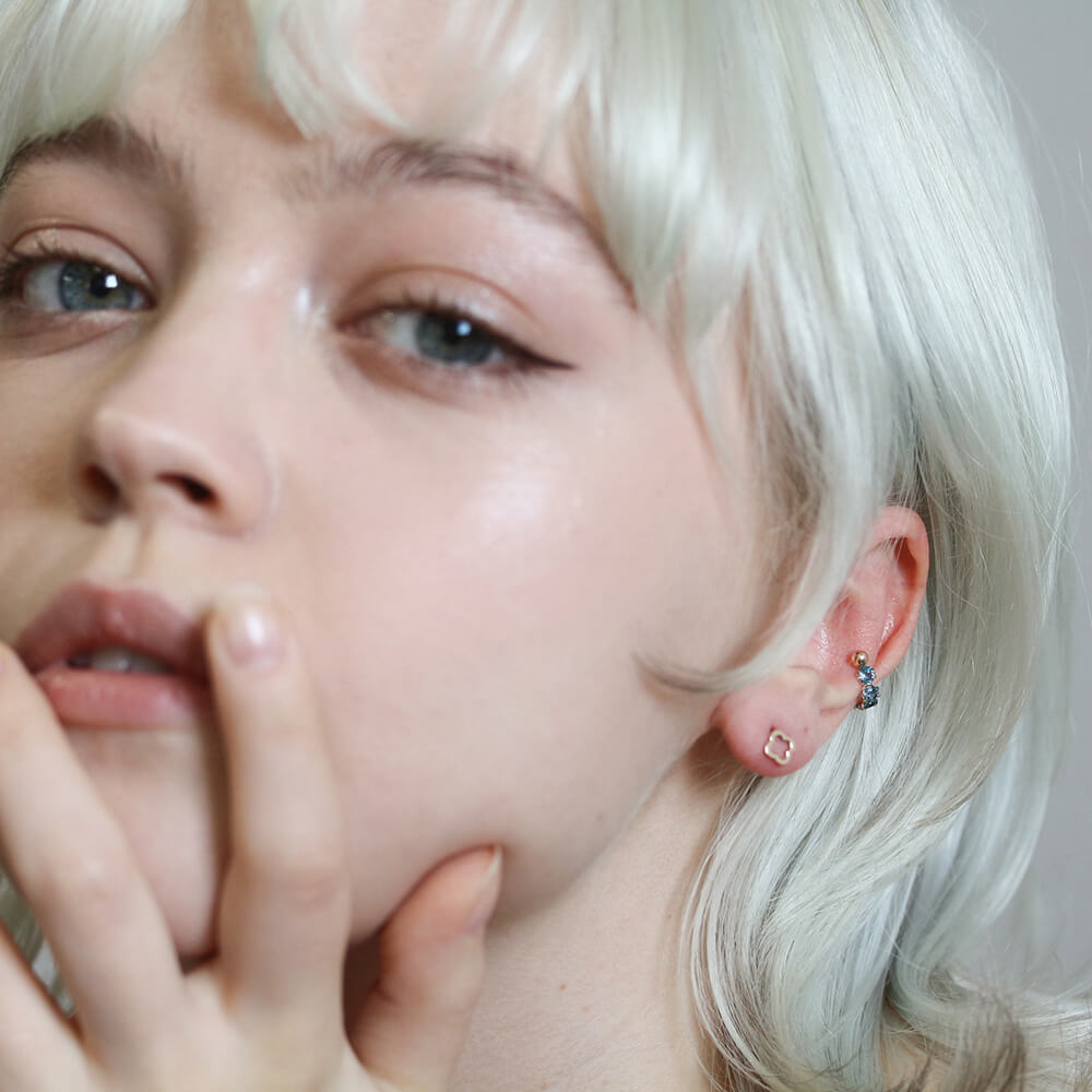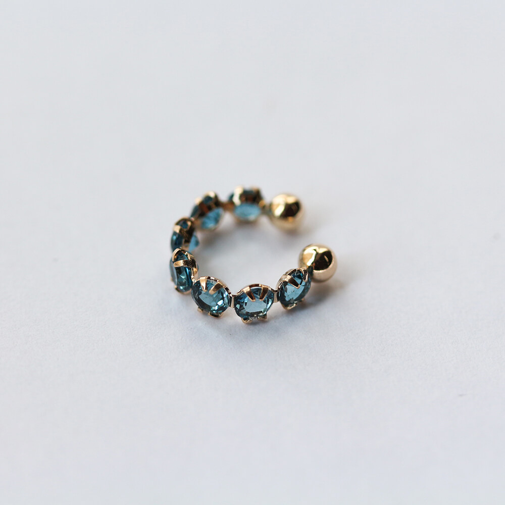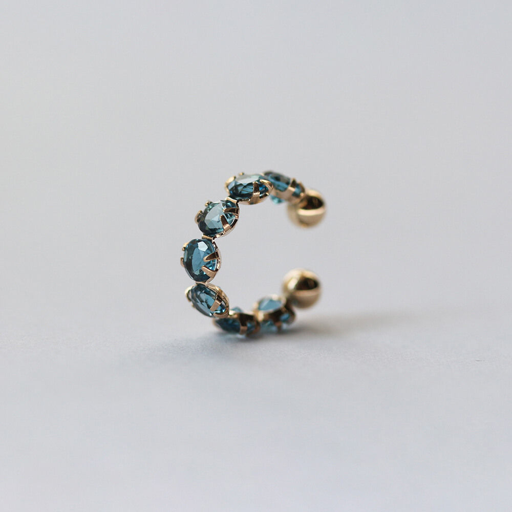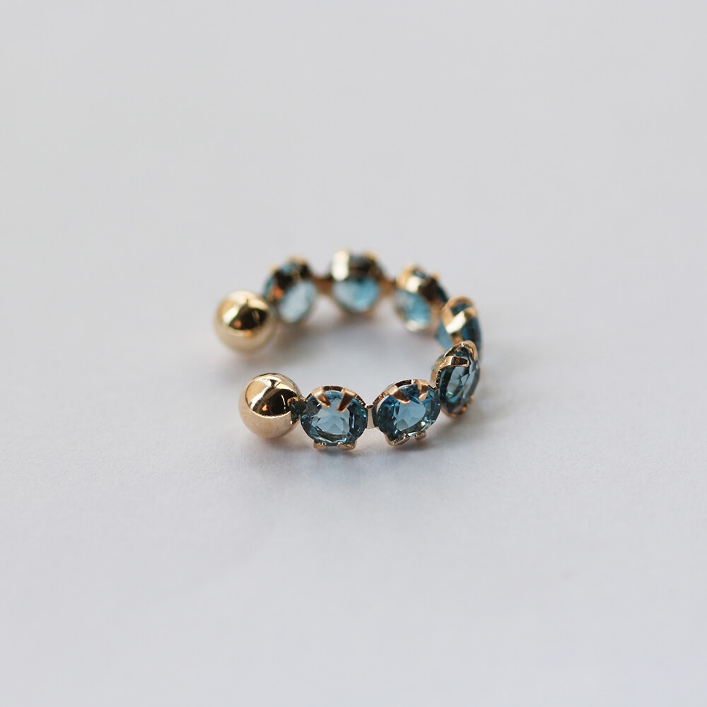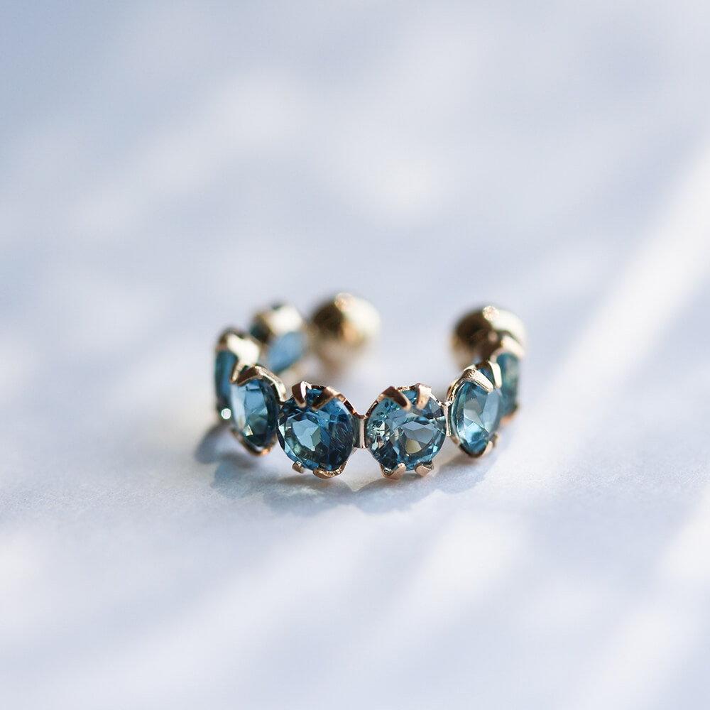 ロンドンブルートパーズを7石並べたイヤーカフ。