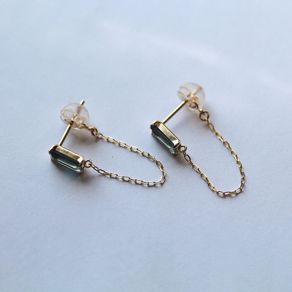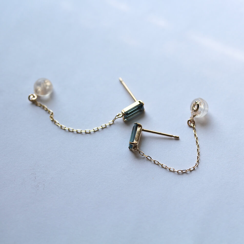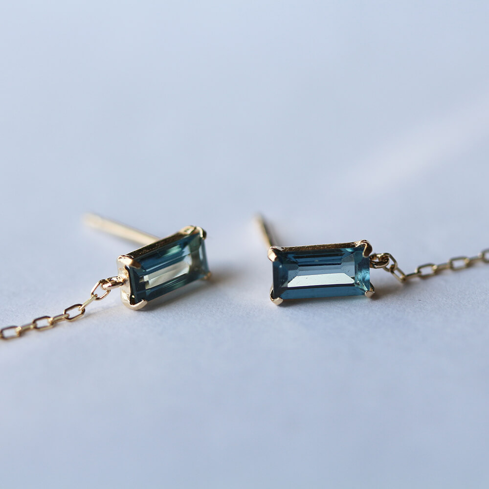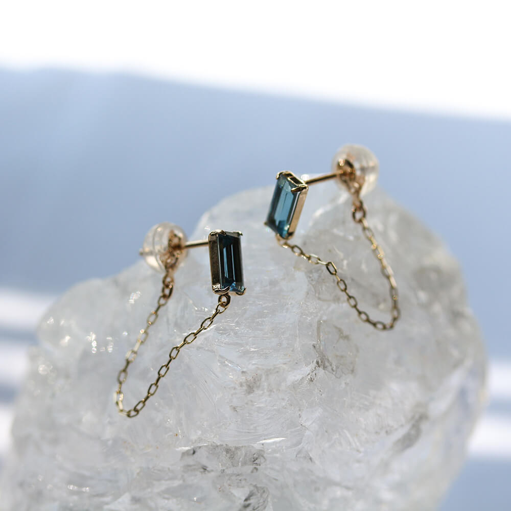 ロンドンブルートパーズ チェーンフープ ピアス | K10YG