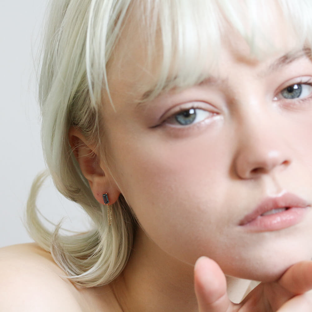 バケットカットのロンドンブルートパーズのチェーンフープピアス。