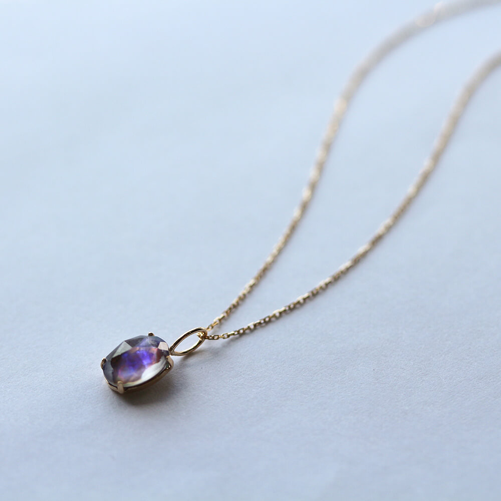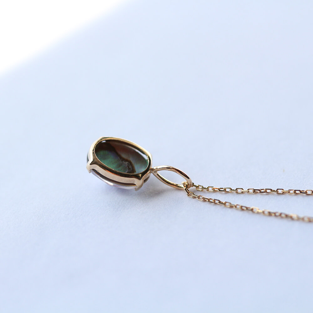 ぷっくりとしたカボションカットが艶やかな虹色を見せ、
