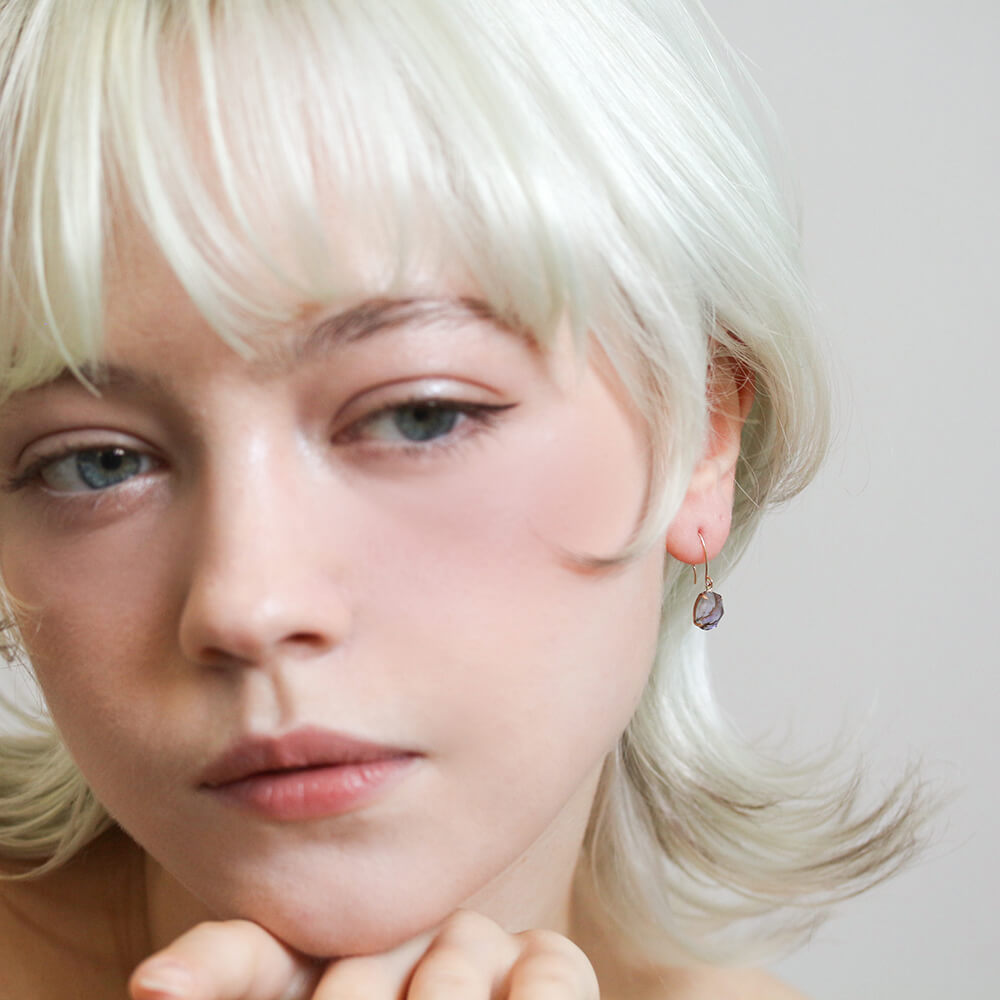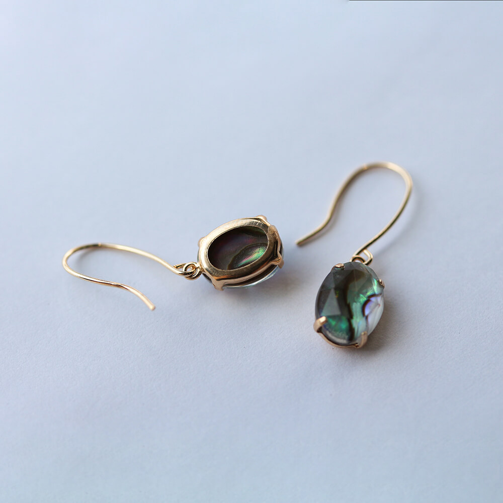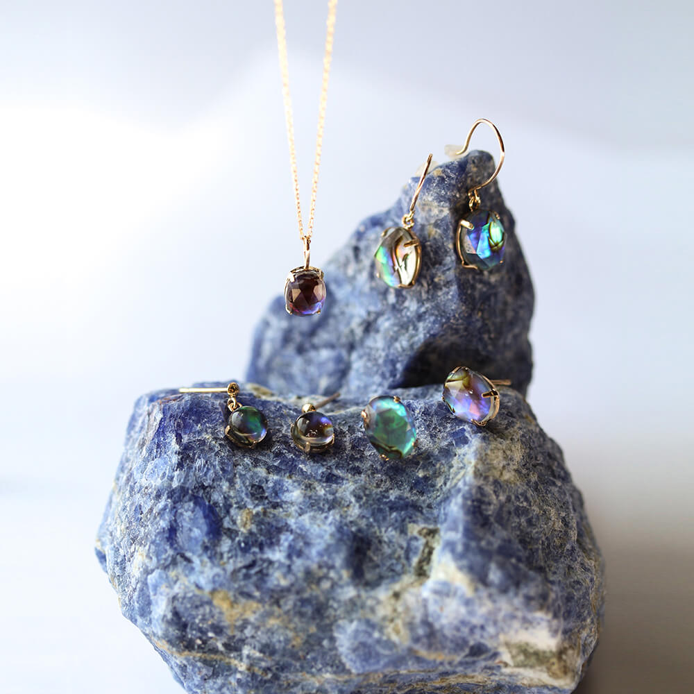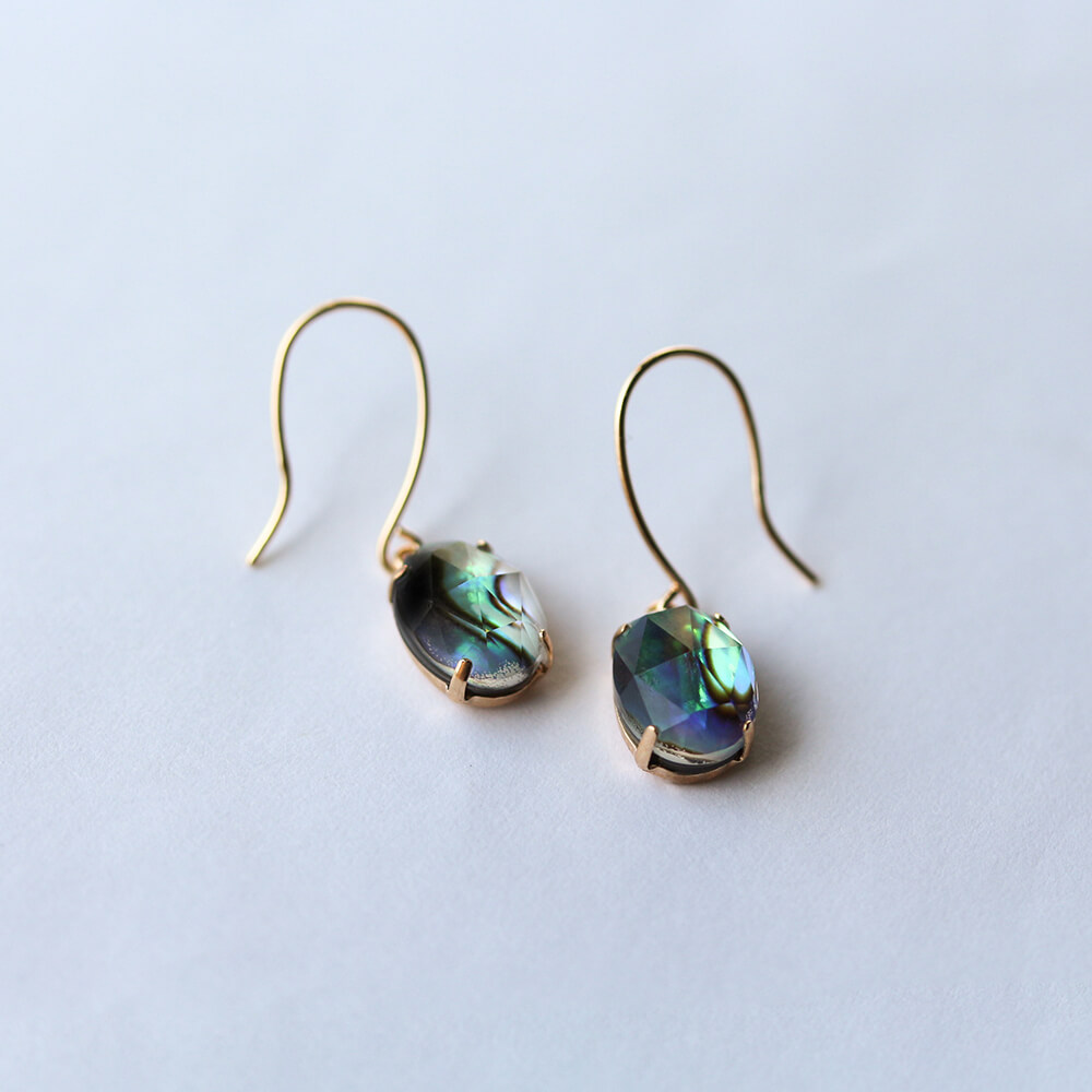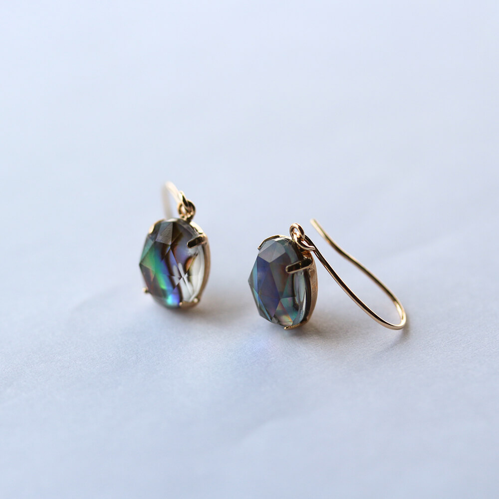 カラーストーン フック ピアス | K10YG 〈ブルーオパール / ラブラドライト〉