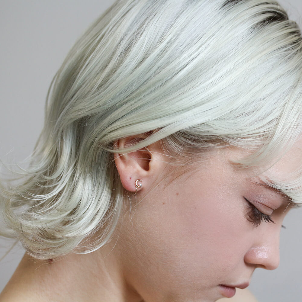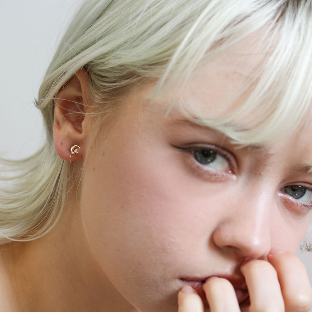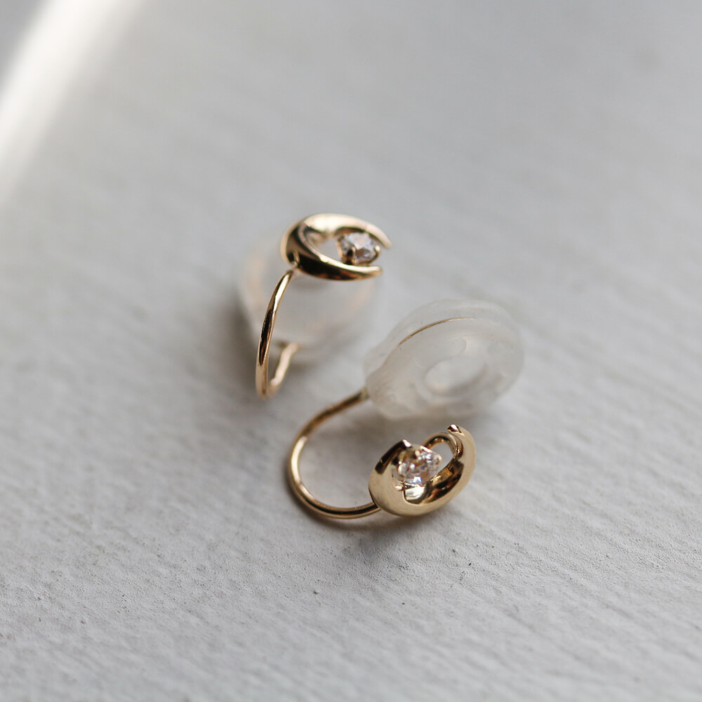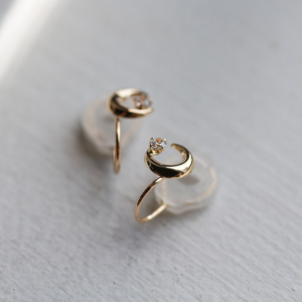 甘過ぎない三日月モチーフにキュービックを添えたシンプルイヤリング。