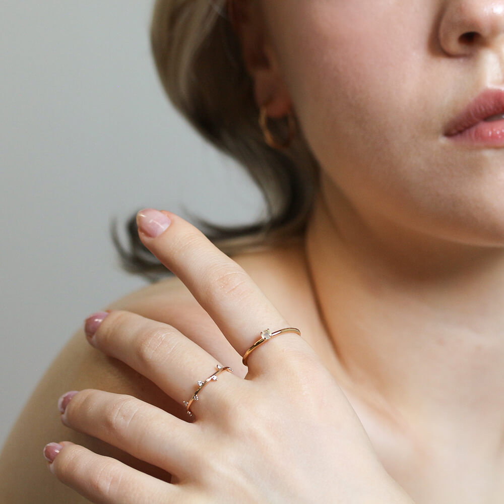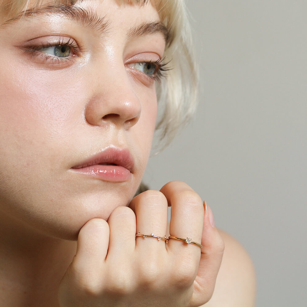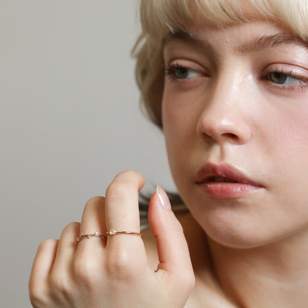 1本でさりげなく、いつものコーディネートと重ねたりと、気軽に使えるおすすめリングです。
