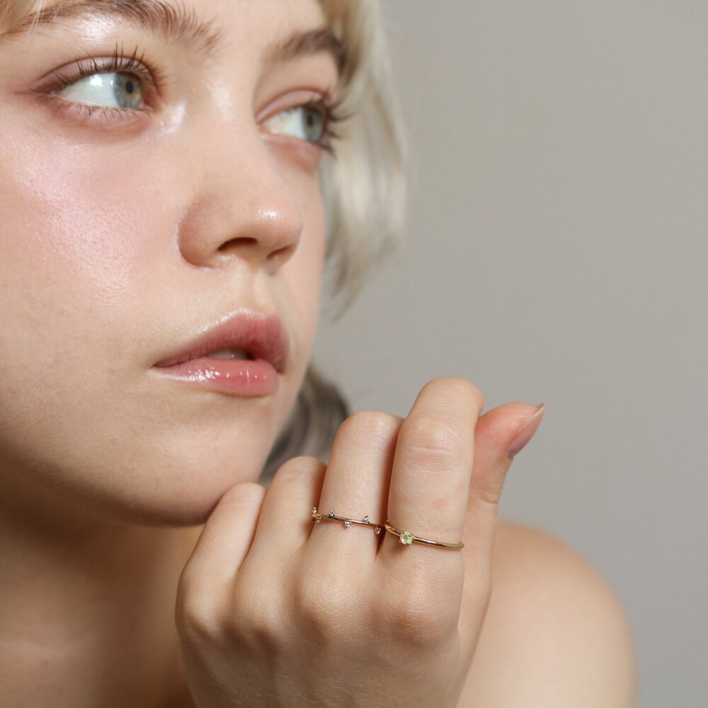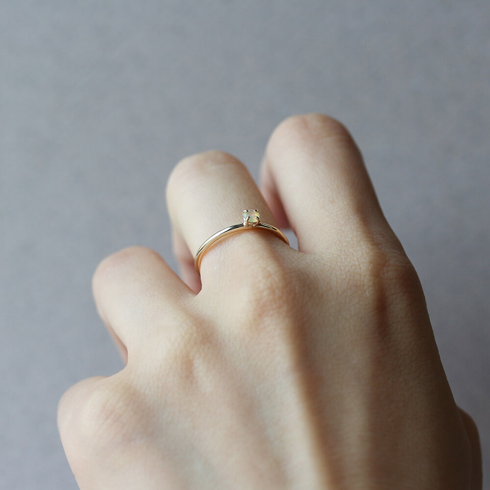 オパールのシンプル一石リング。