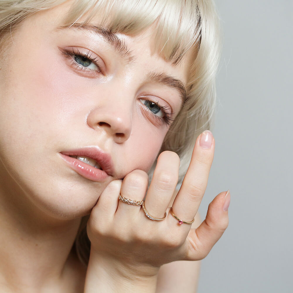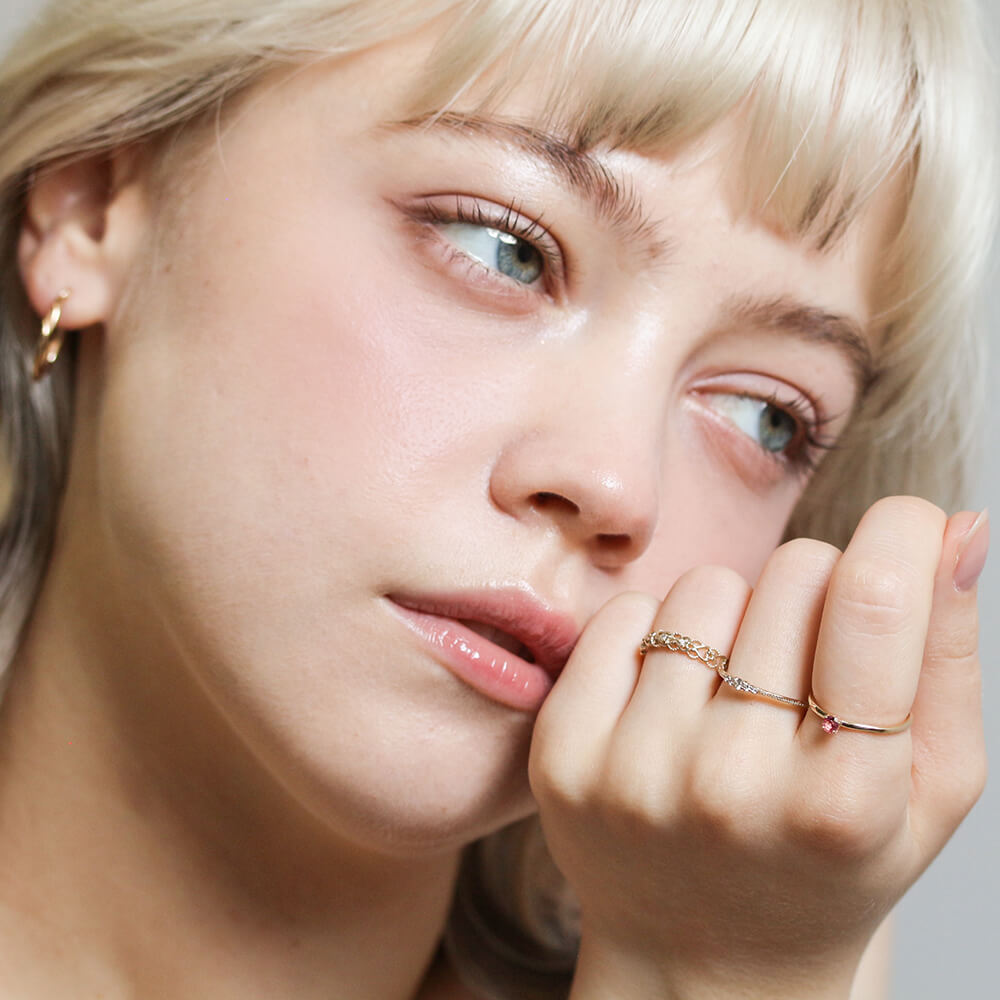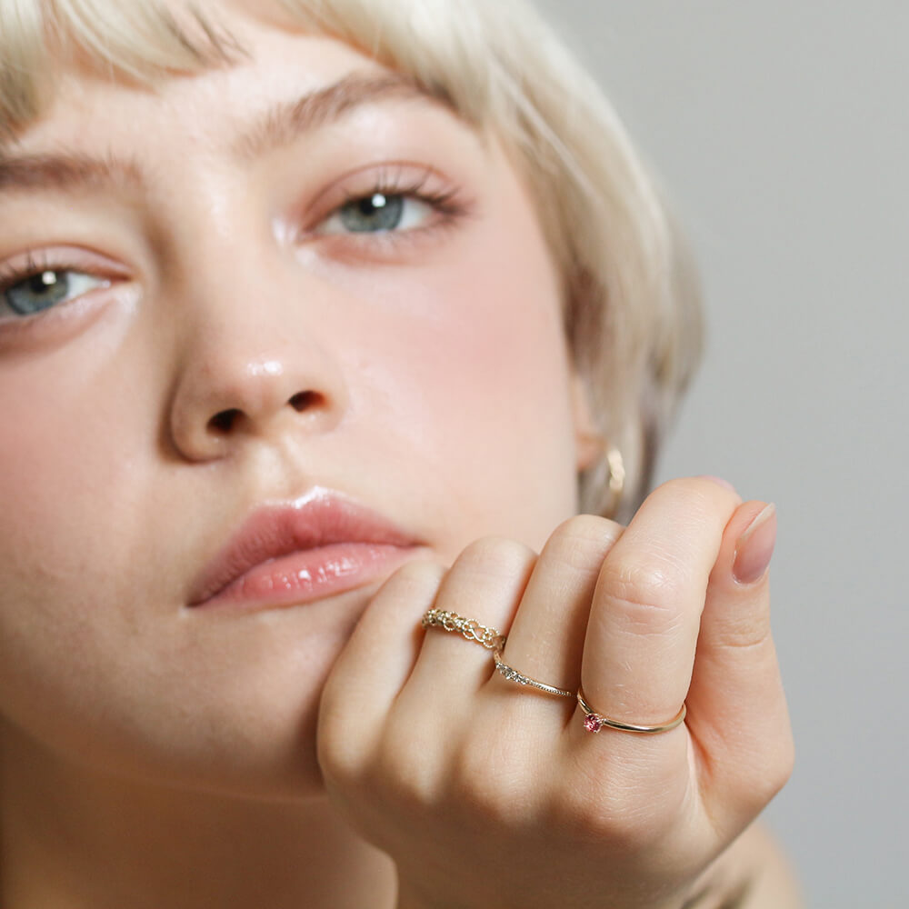 1本でさりげなく、いつものコーディネートと重ねたりと、気軽に使えるおすすめリングです。