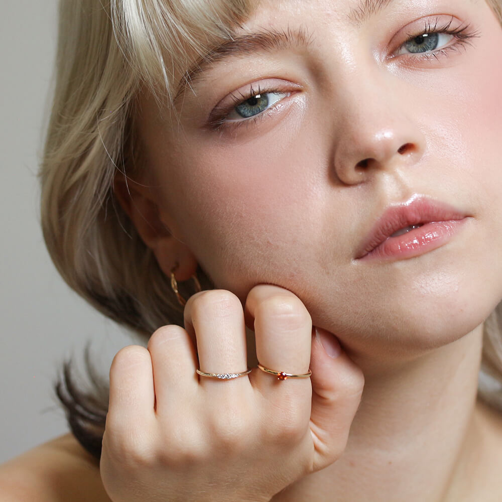 1本でさりげなく、いつものコーディネートと重ねたりと、気軽に使えるおすすめリングです。