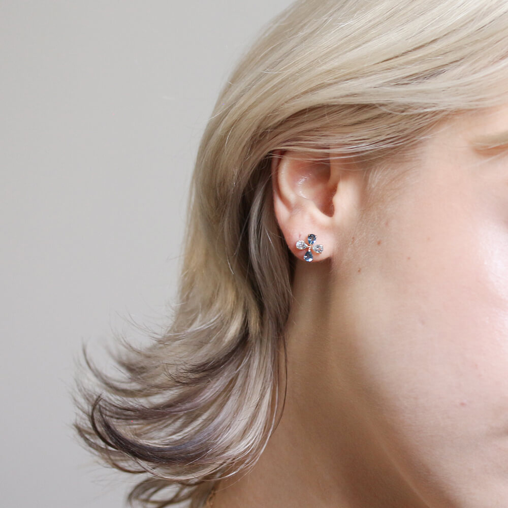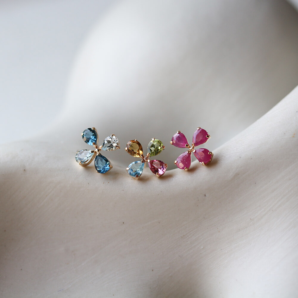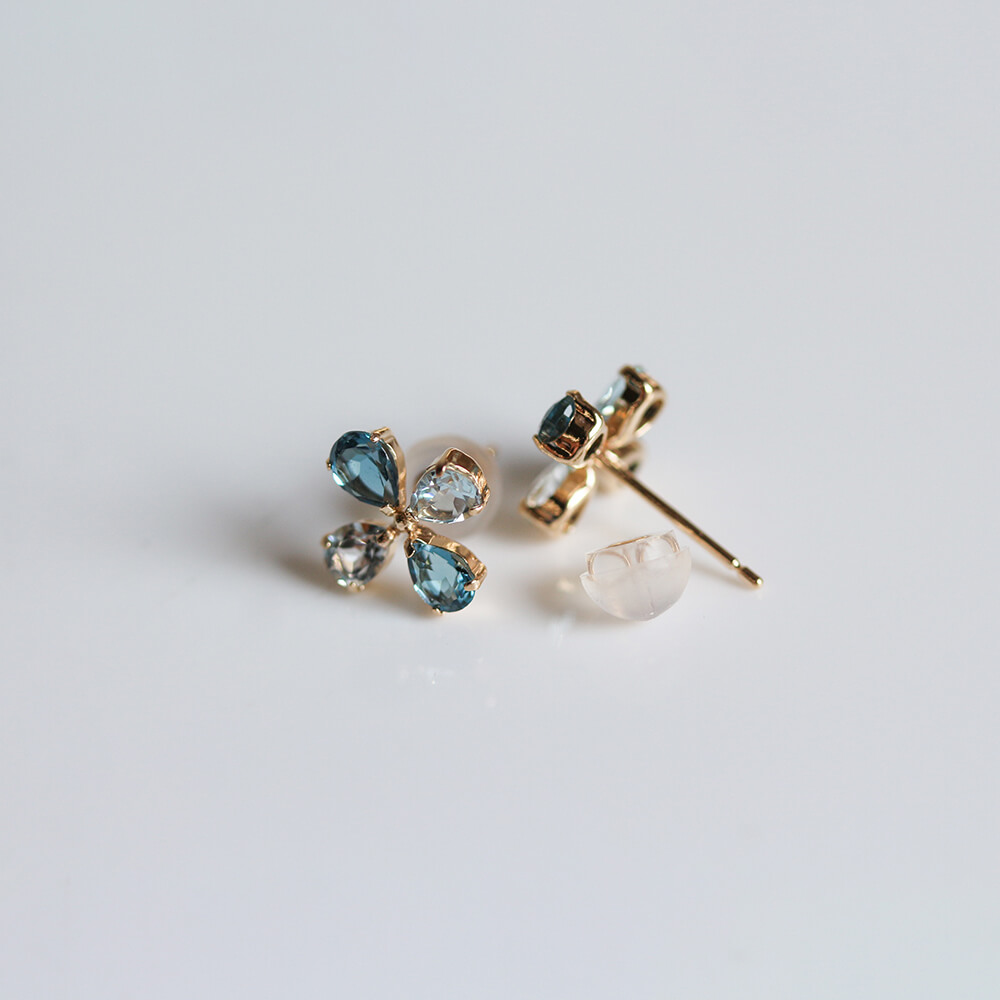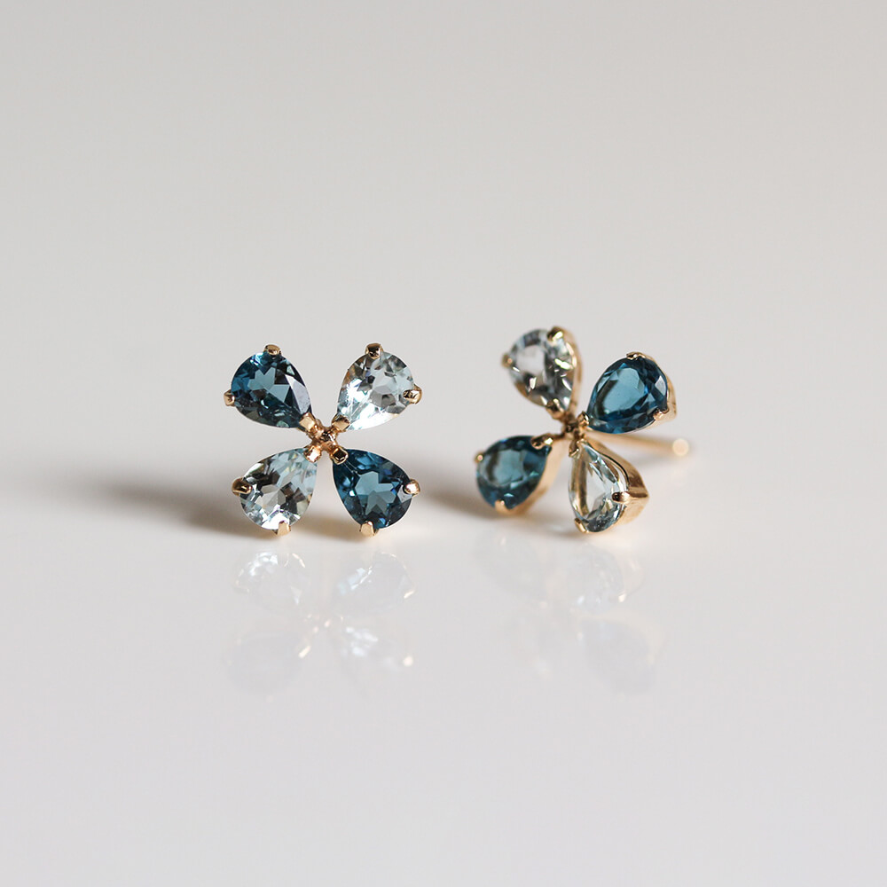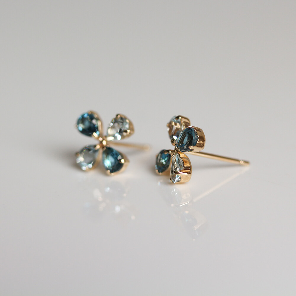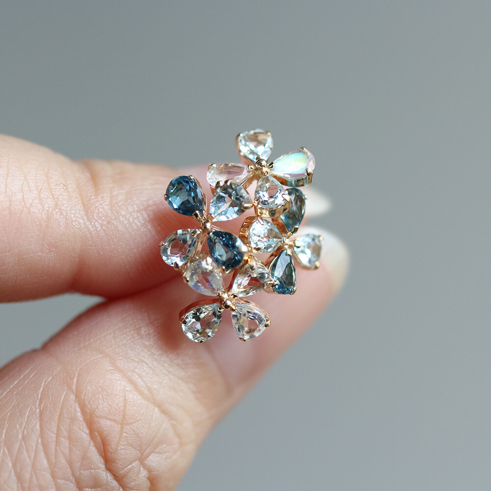 透明感輝く人気のカラーストーンであしらった花びらが、異なるブルーの魅力的な色合いを見せてくれます。