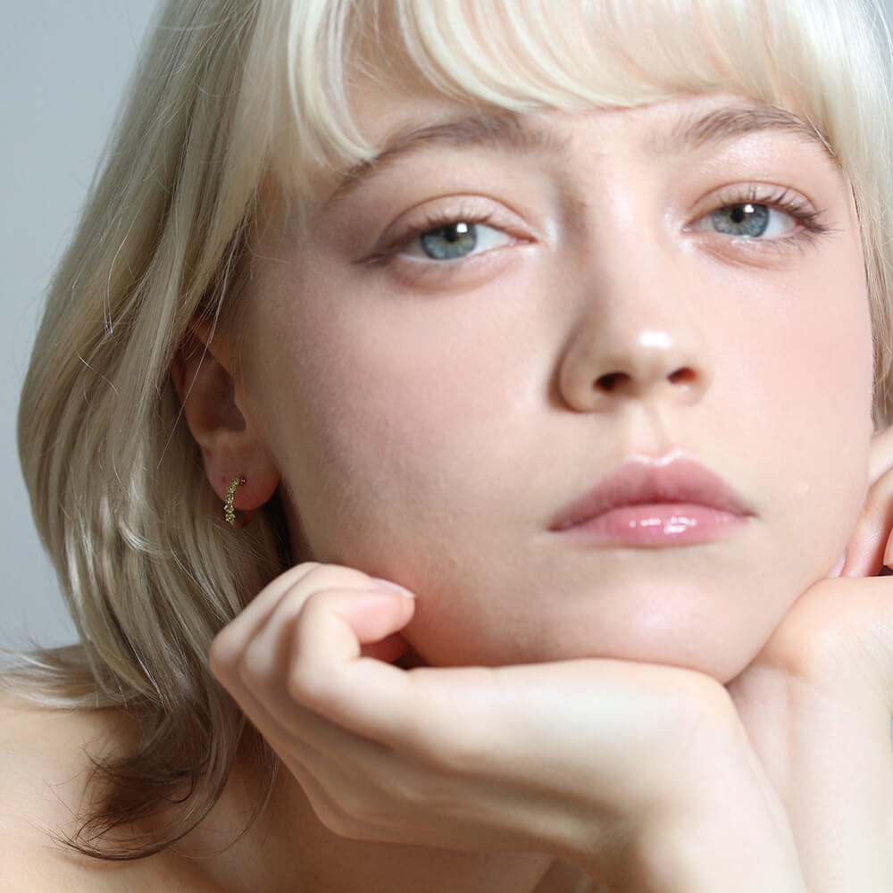 爽やかなフレッシュカラーのペリドットがお顔周りを明るく彩ります。