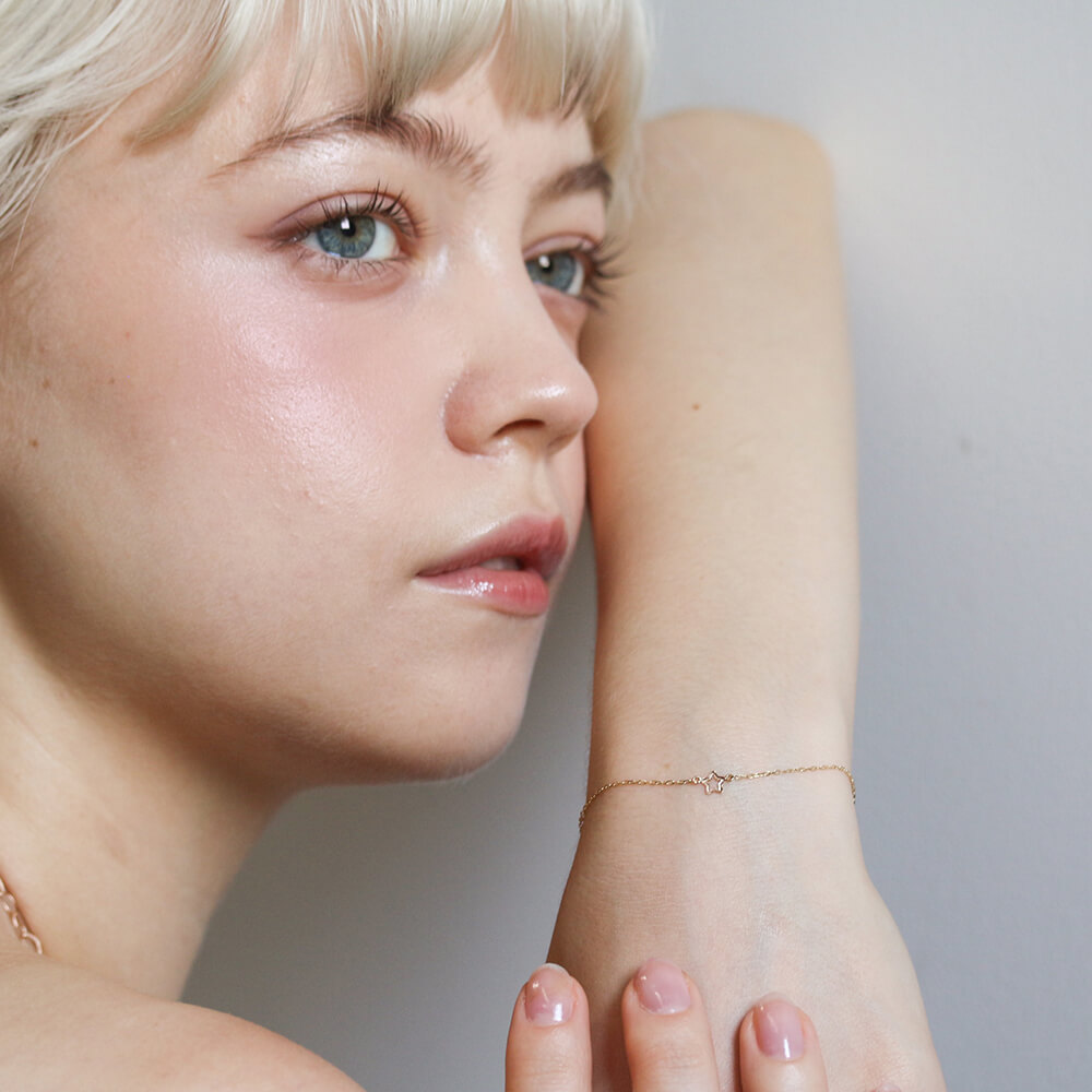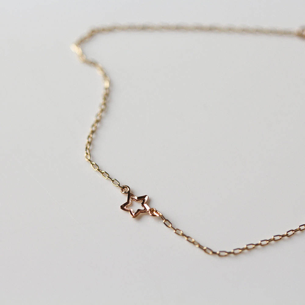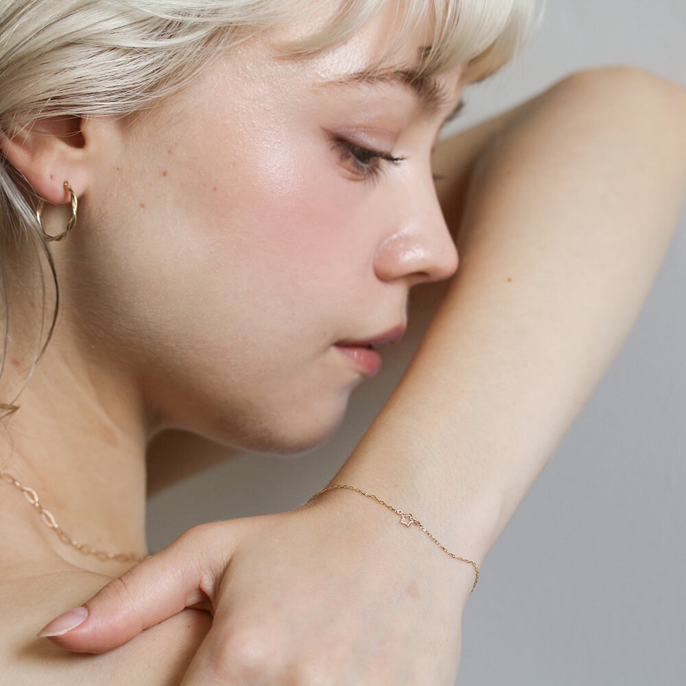 小さなスターモチーフがアクセントになるゴールドブレスレット。